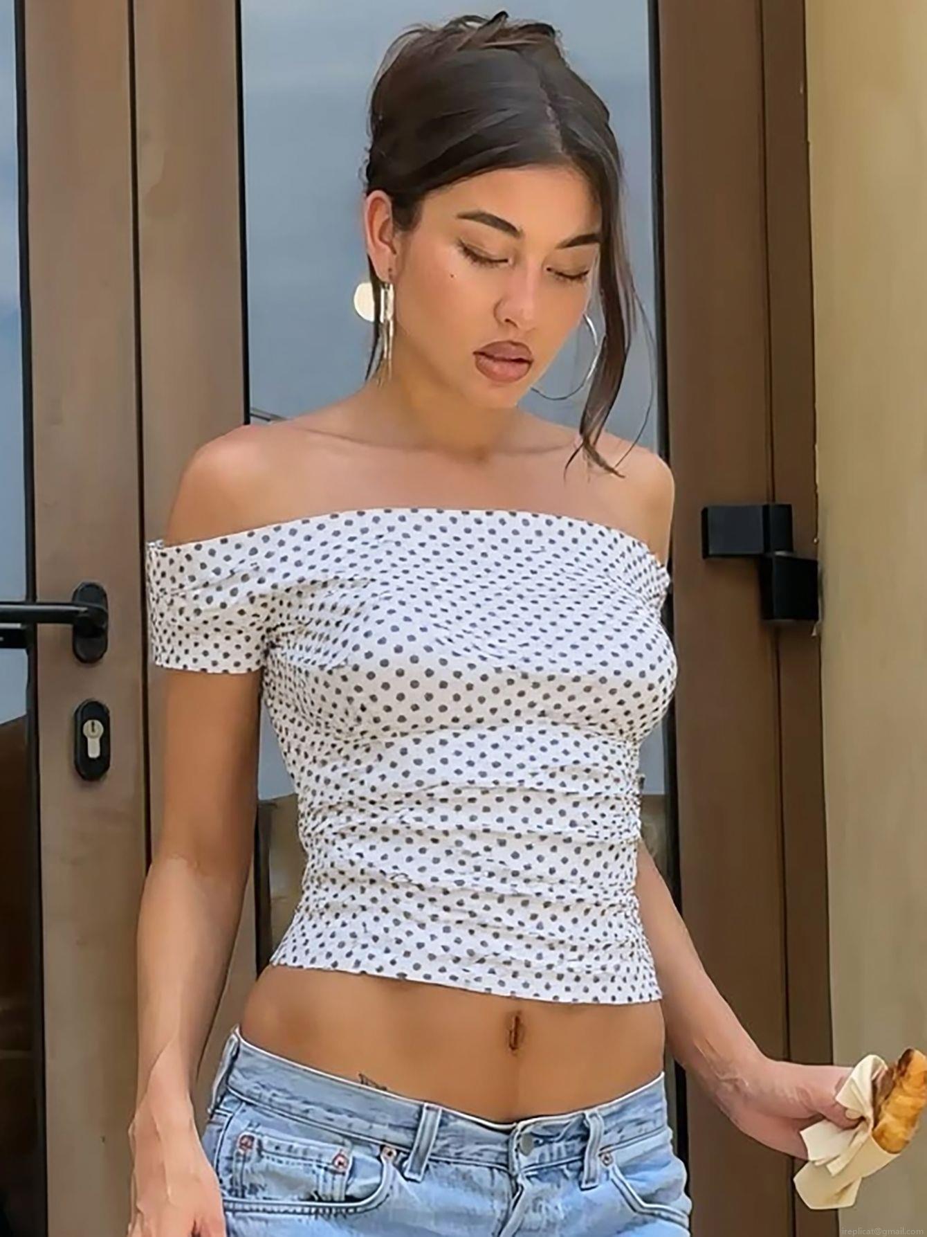 • Sexy Polka Dot Halter Neck Tank Top For Women Backless Slim Fit Sleeveless V-Neck Cropped Vest Summer Streetwear Clubwear Party Top Polyester Spandex