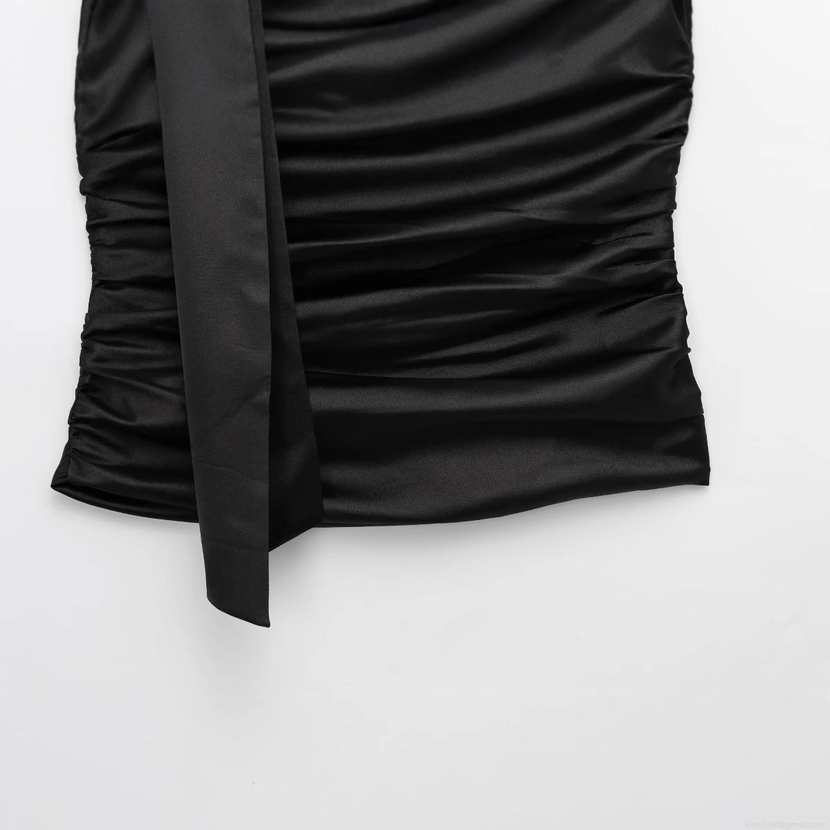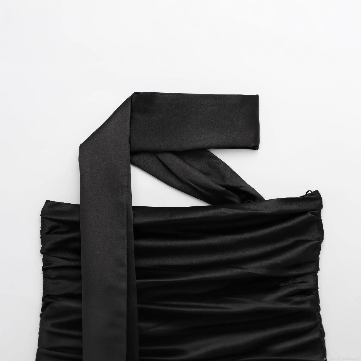 Sexy Ruched Satin Halter Tube Top Women Strapless Backless Slim Fit Evening Party Top Solid Black Ruched Satin Bandana Top