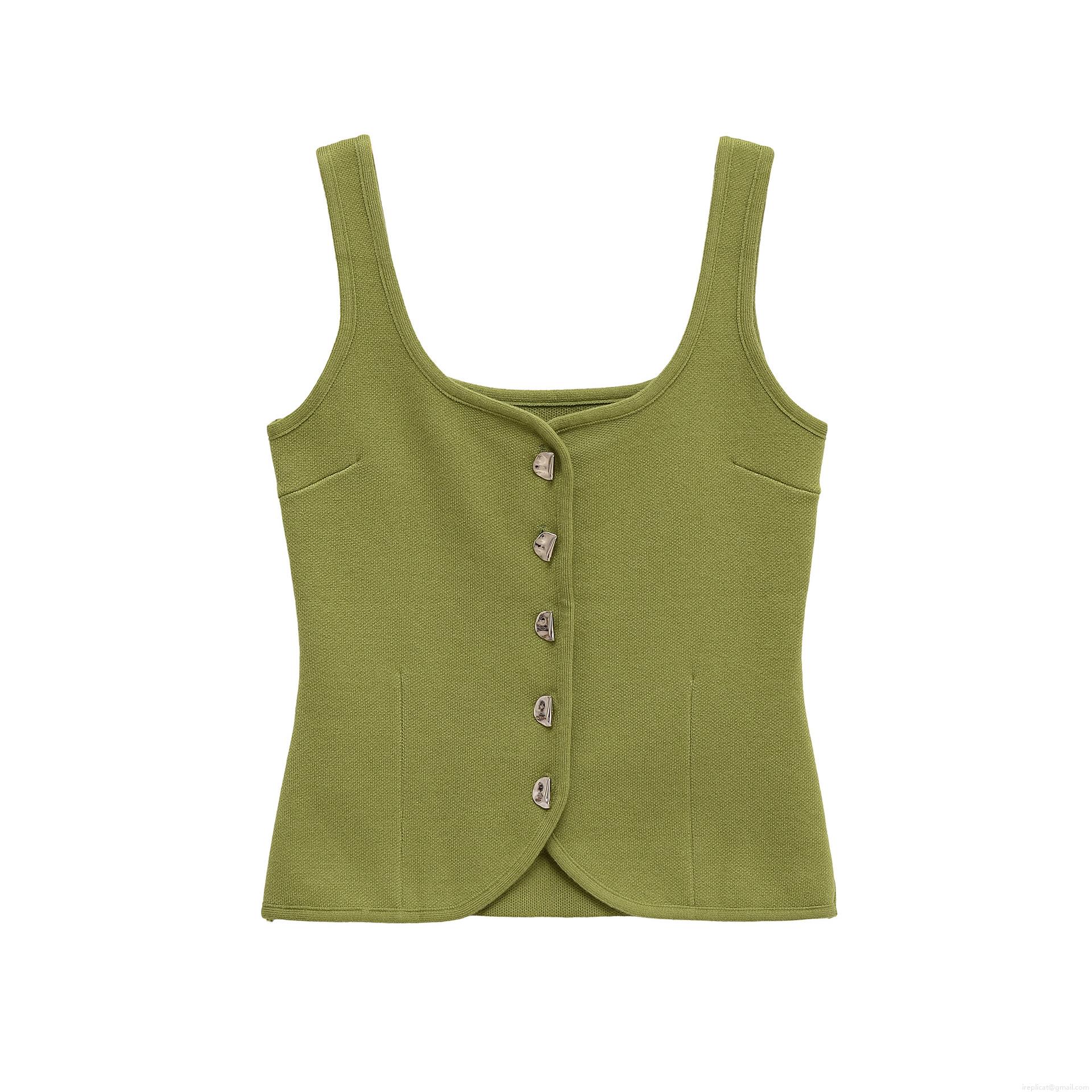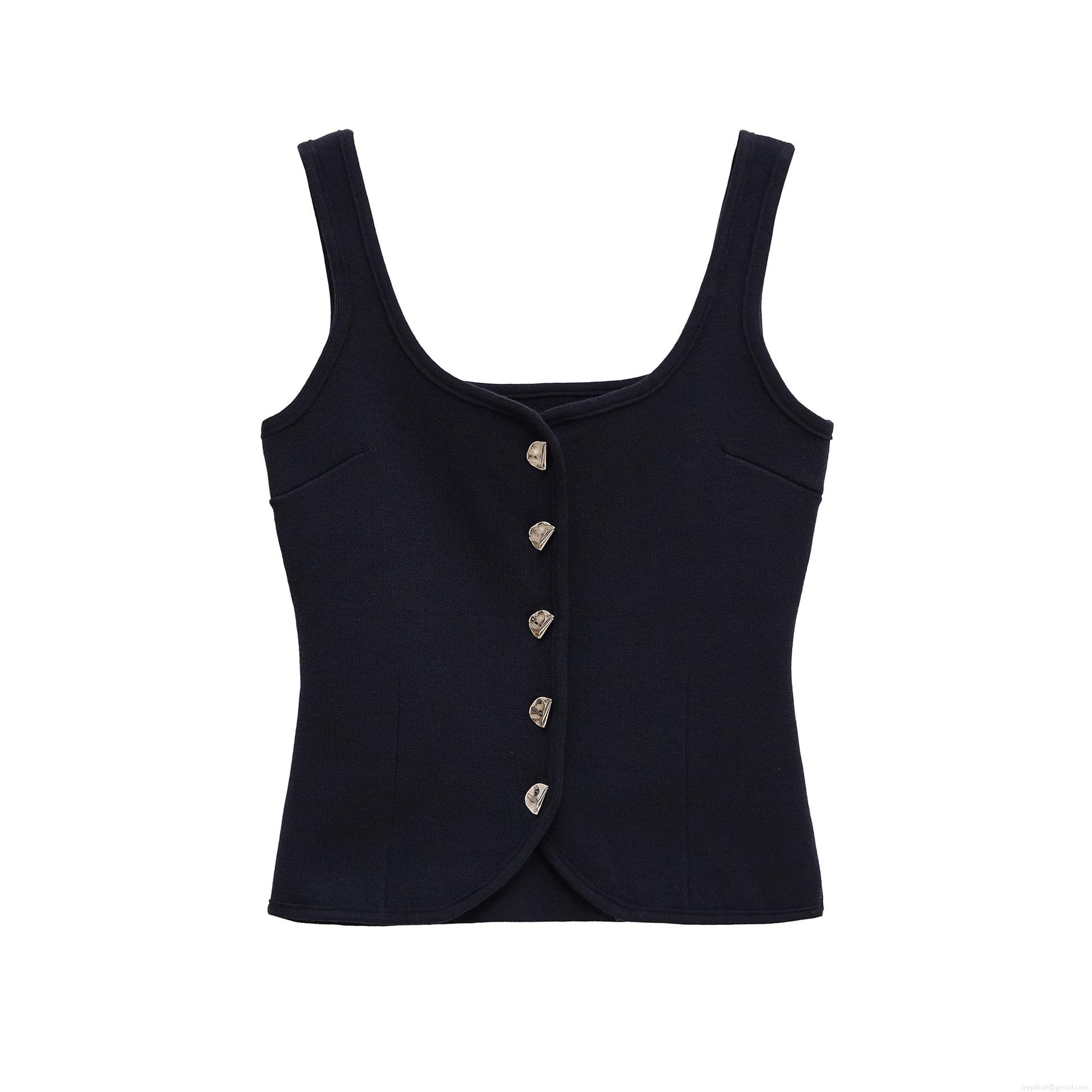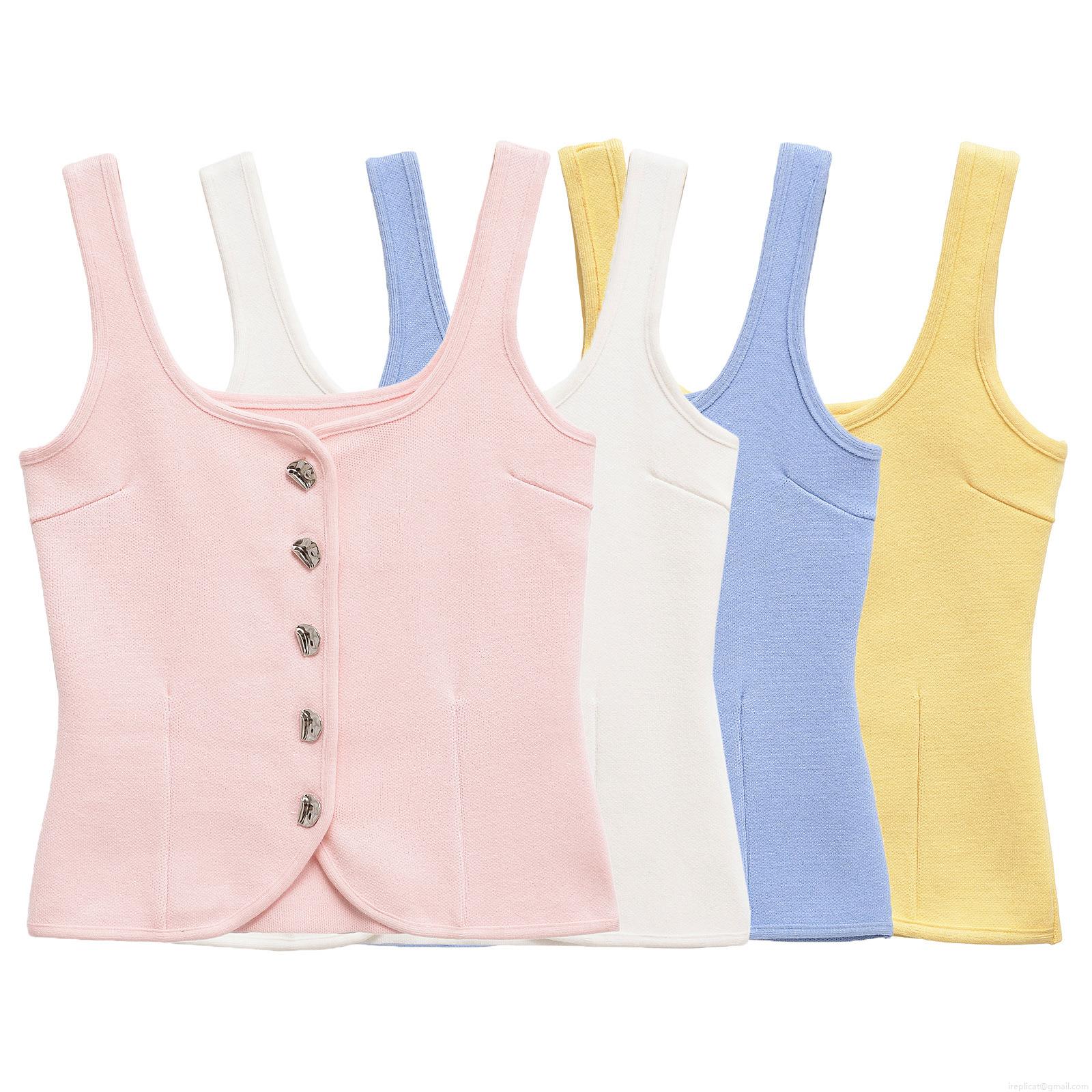 Sexy Slim Fit Knit Vest Top With Irregular Metal Buttons Sleeveless Square Neck Mercerized Cotton Crop Top Casual Summer Tank Top For Women