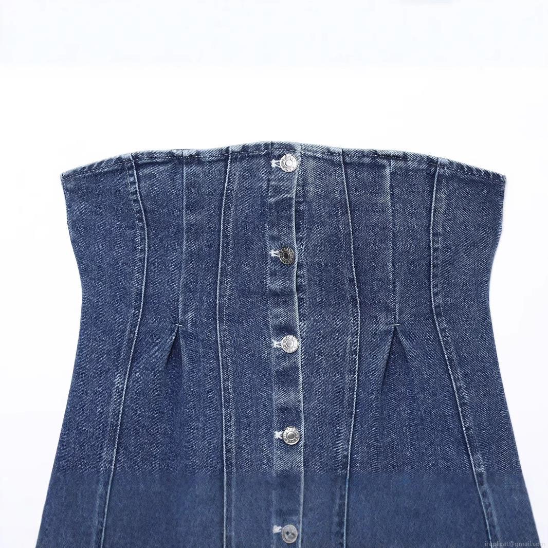 • Sexy Strapless Denim Corset Top For Women Slim Fit Button Up Washed Denim Bustier Top Trendy Clubwear Streetwear Y2K Fashion Bandeau Top Blue