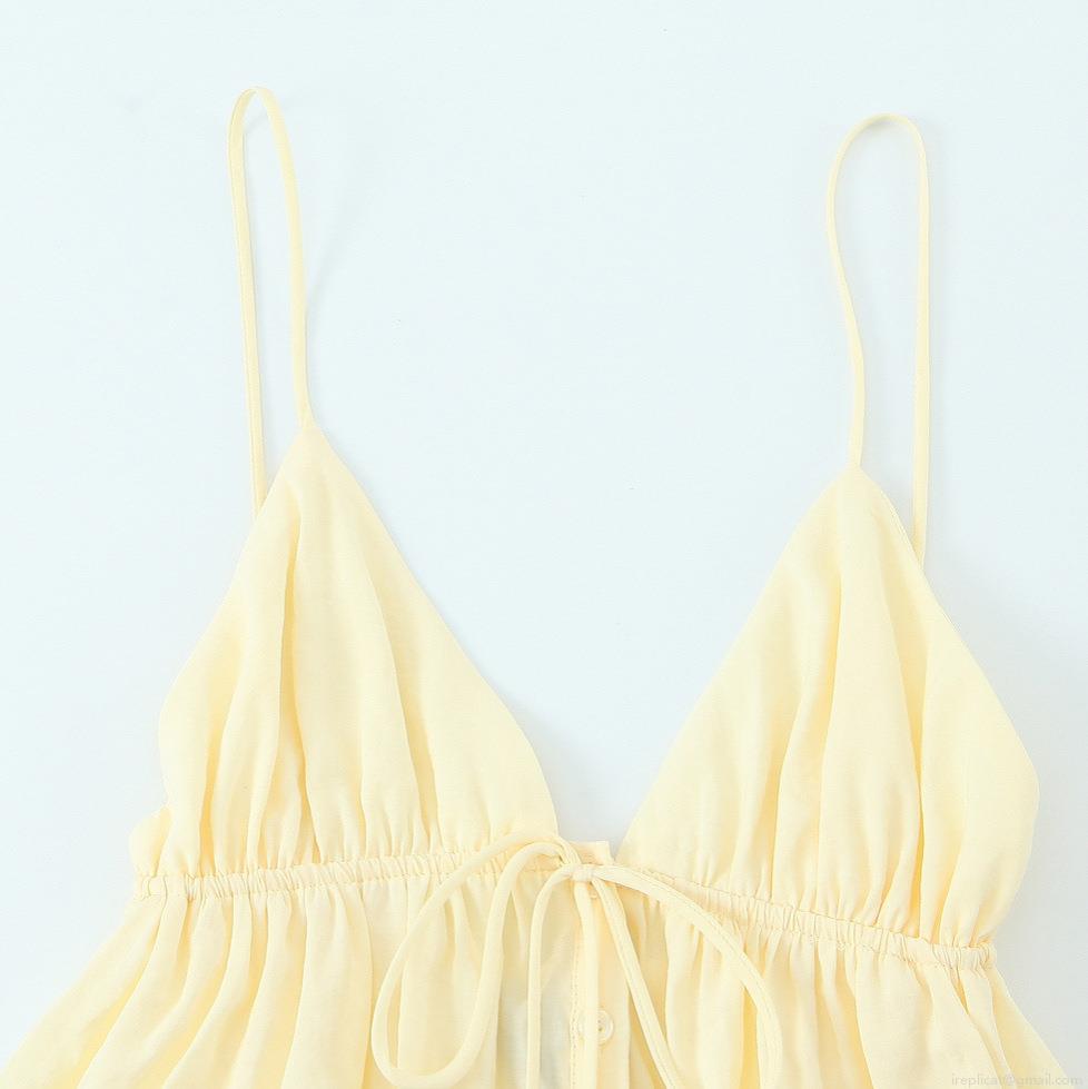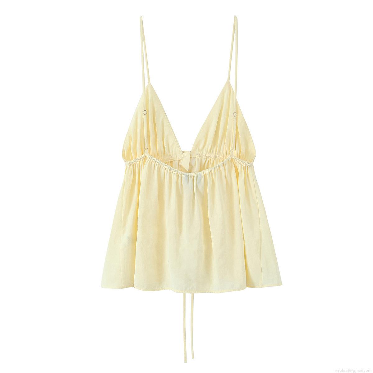 • Sexy V Neck Backless Drawstring Camisole Top For Women Summer Fashion Button Front Ruffle Hem Tank Top Sleeveless Cotton Blend Beach Wear Blouse