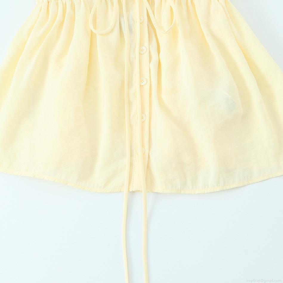 Backless, Deep V-neck, Front Button, Gathered Hem