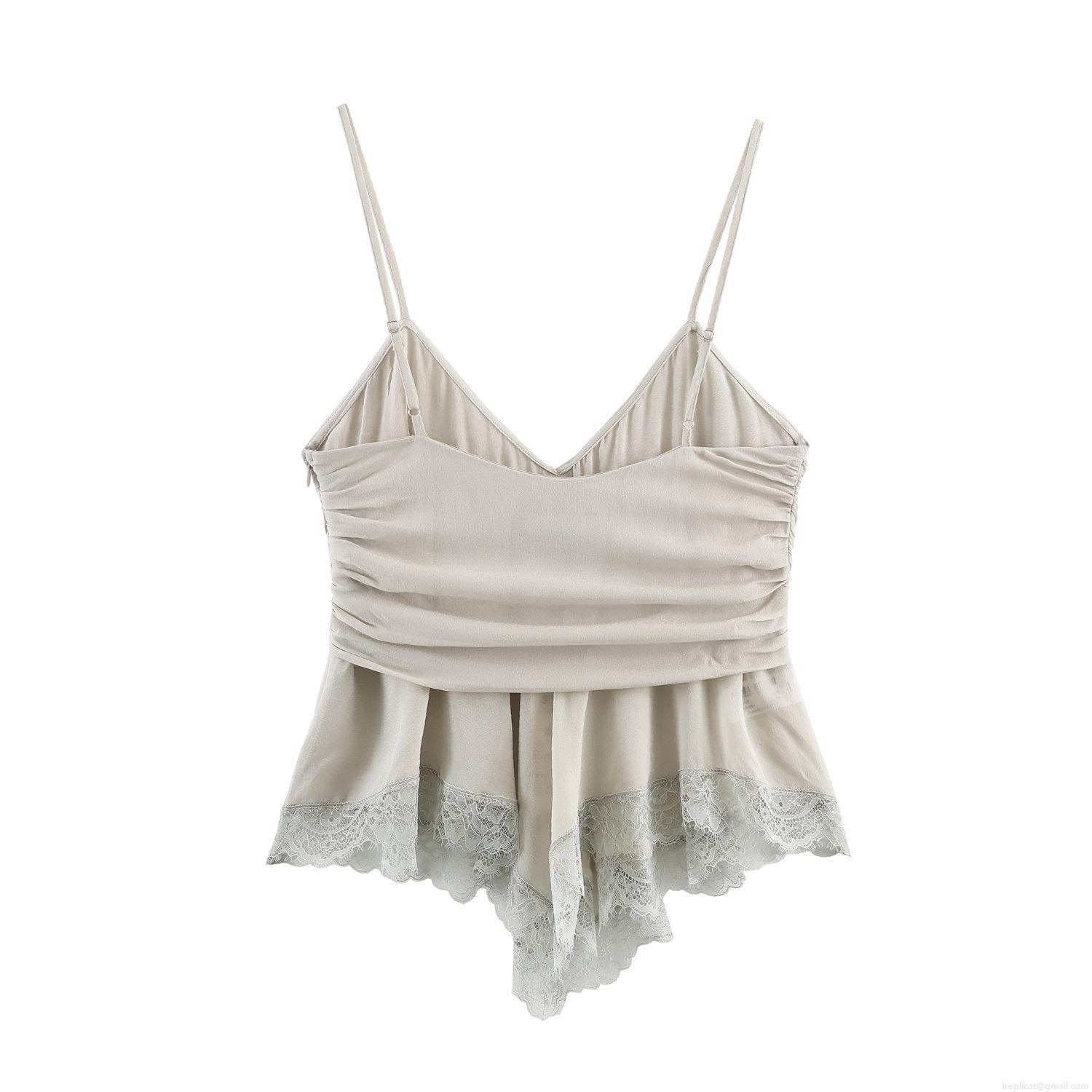 • Sexy V-Neck Lace Trim Cami Top For Women Georgette Ruching Solid Color Adjustable Spaghetti Strap Camisole Party Clubwear Summer Sleeveless Shirt