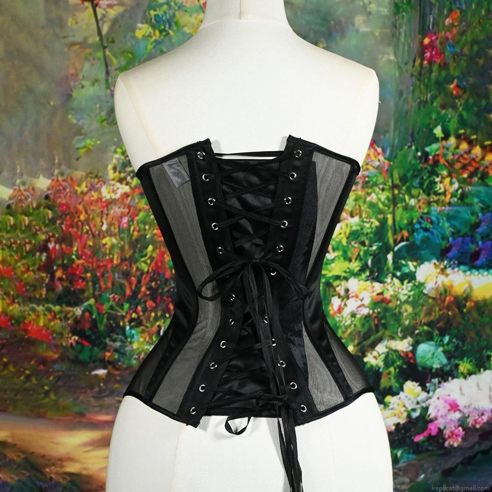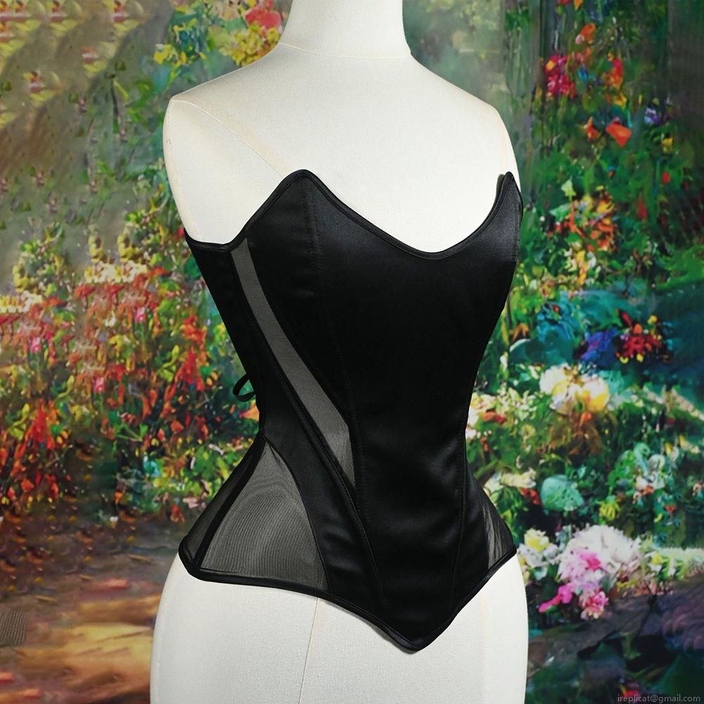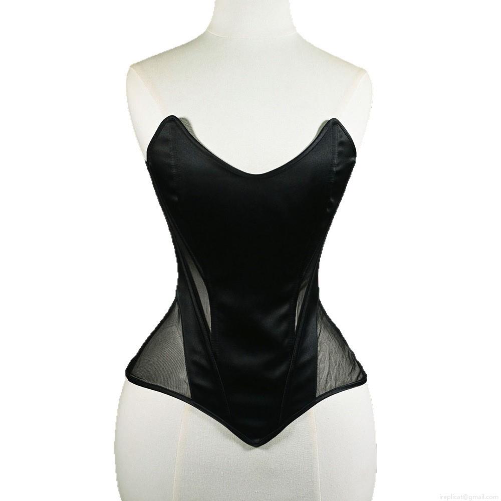 • Sexy Women Black Satin Mesh Patchwork Corset Top Fishbone Bustier Back Lace Up Cropped Tank Top For Night Club Party Streetwear