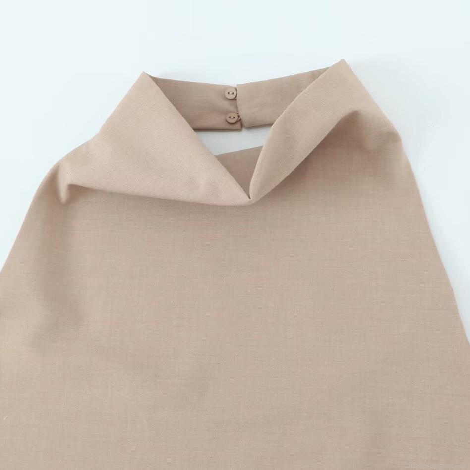 • Sexy Women Halter Neck Backless Top Elegant Cotton Linen Blend Sleeveless Slim Fit Solid Color Vest For Party Date Night Summer Fashionable Minimalist Camisole