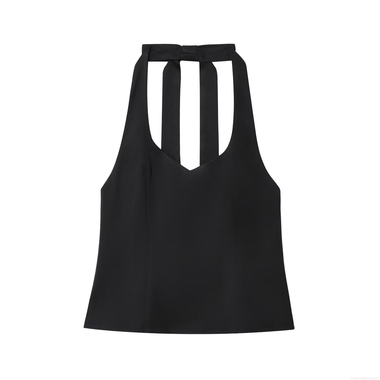 • Sexy Women Halter Top V-Neck Backless Bow Tie Slim Fit Polyester Tank Top Summer Dating Sweet Pink Gingham Black Sleeveless Vest Top