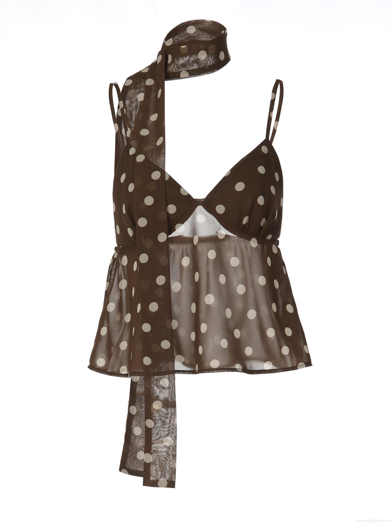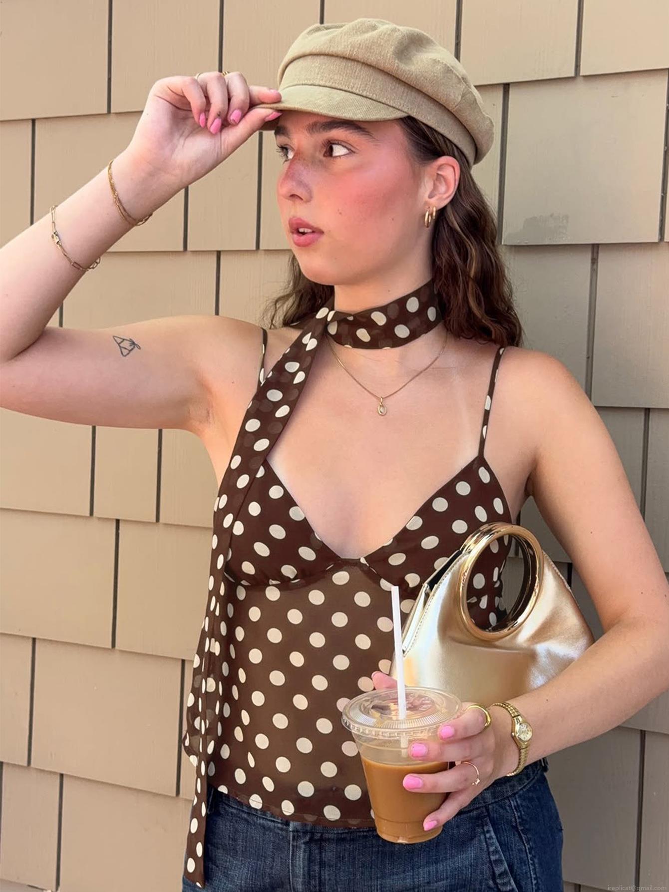 • Sexy Women Polka Dot Camisole Polyester Backless V Neck Tank Top With Matching Choker Scarf Summer Vacation Retro Streetwear Women Clothing
