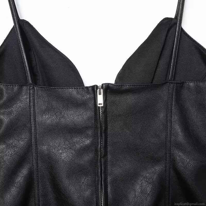 • Sexy Women PU Leather Cami Top Lace Up Slim Fit Corset Top With Metal Eyelets Back Zipper Sleeveless Streetwear Clubwear Party Tank Top