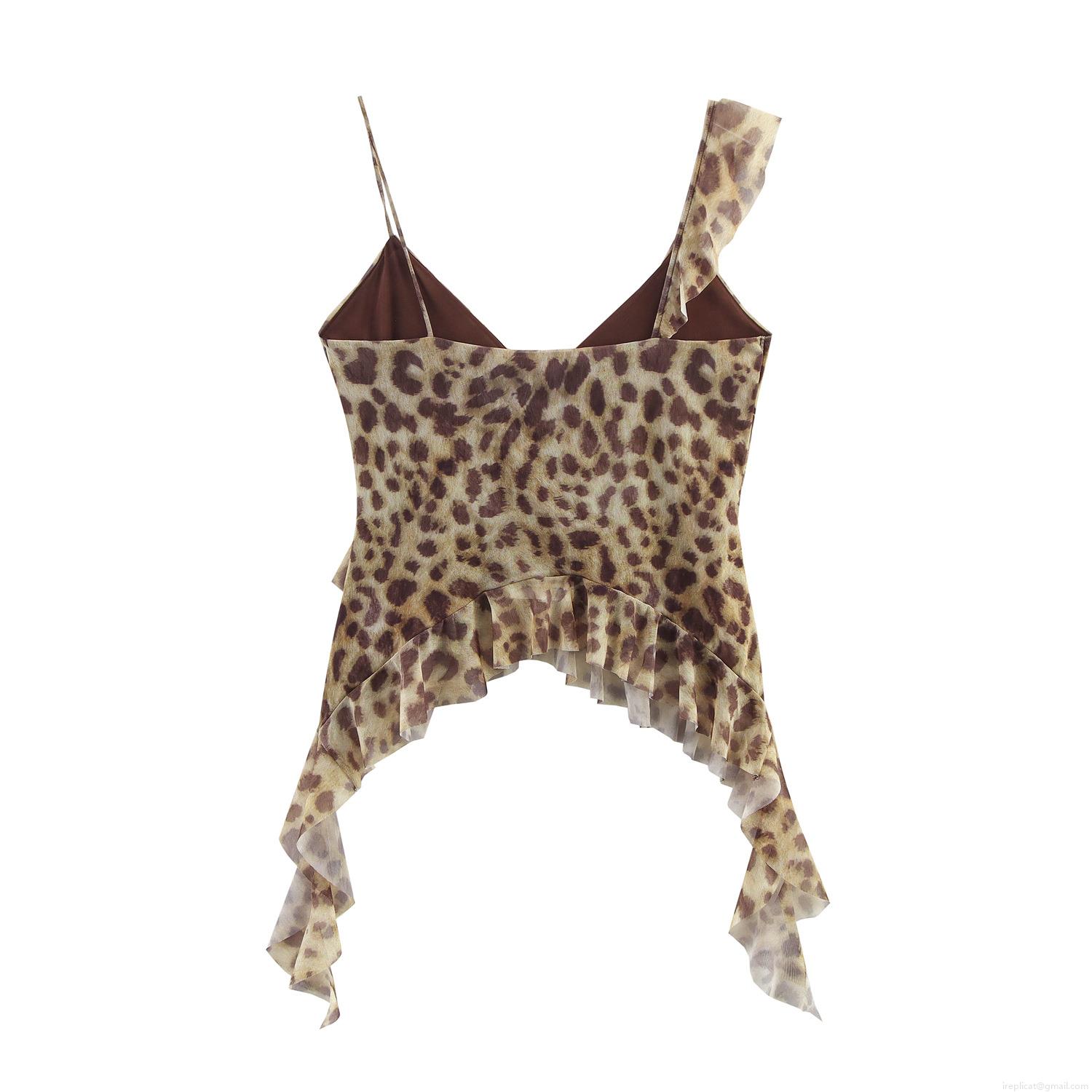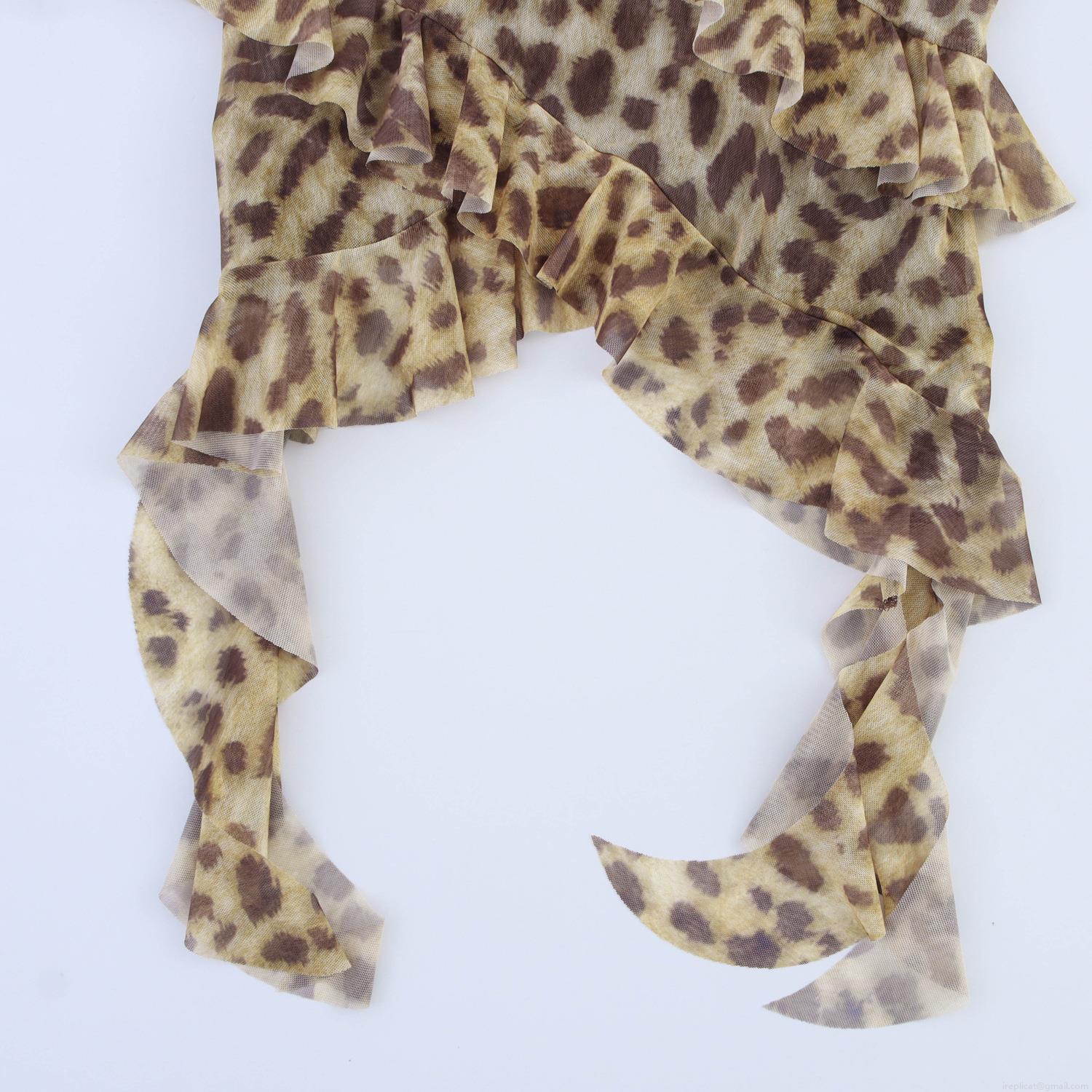 • Sexy Women Ruffled Mesh Camisole Top Asymmetric Leopard Floral Print Irregular Hem Crop Tank Top For Summer Party Clubwear