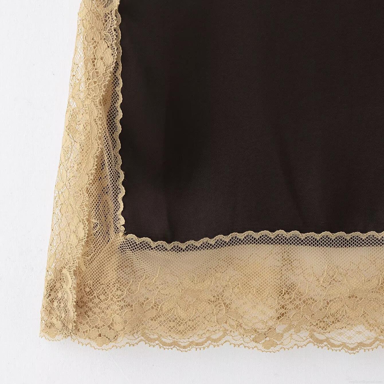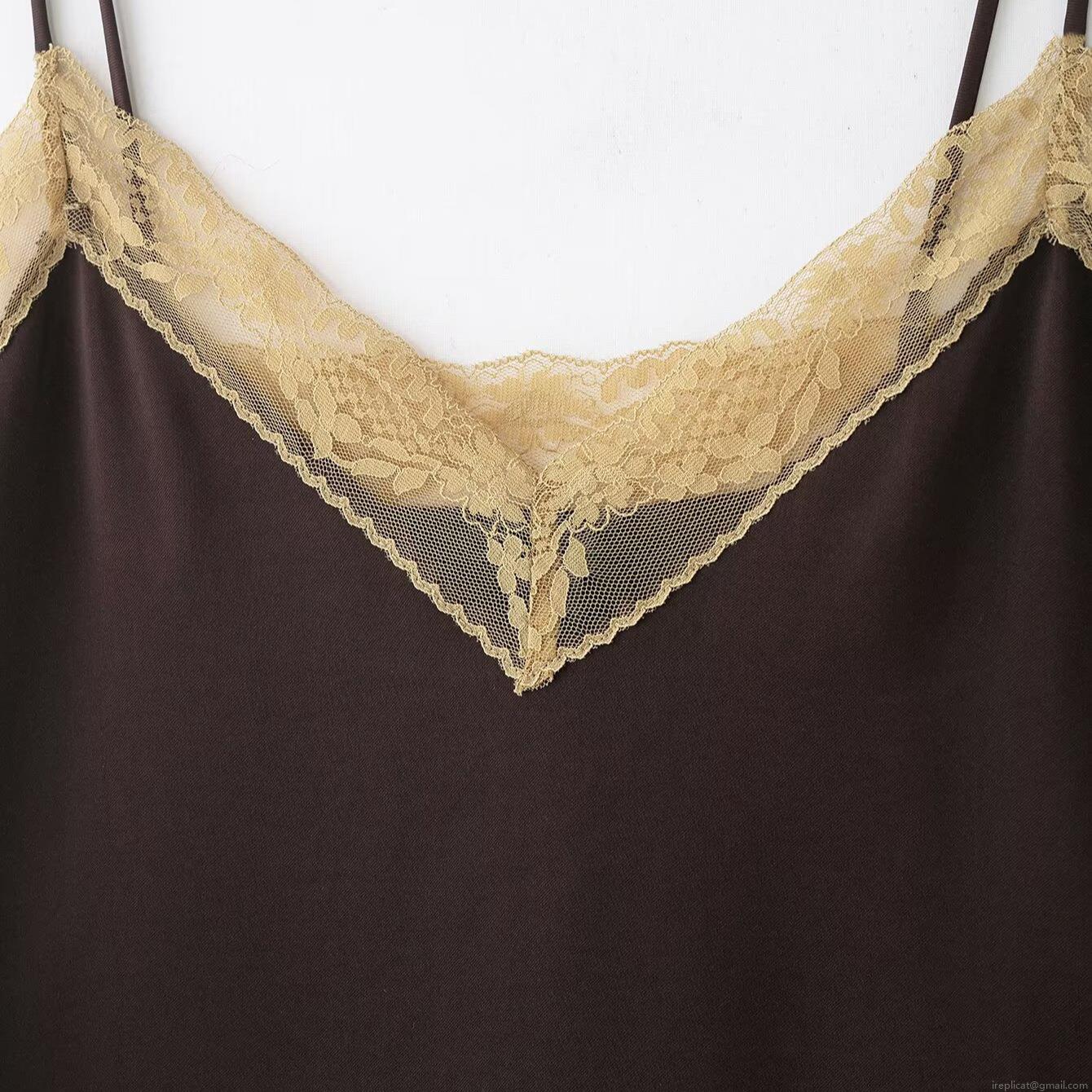Solid Color, V-neck, Lace Patchwork, Thin Straps