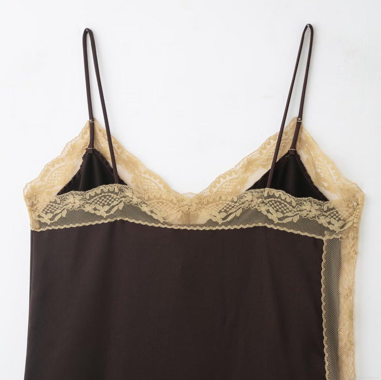 • Sexy Women Satin Camisole Top Lace Patchwork V Neck Spaghetti Strap Sleeveless Tank Top Elegant Lingerie Style Home Wear Underwear For Women