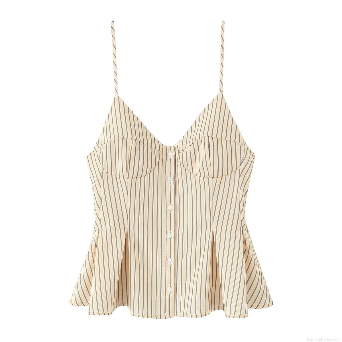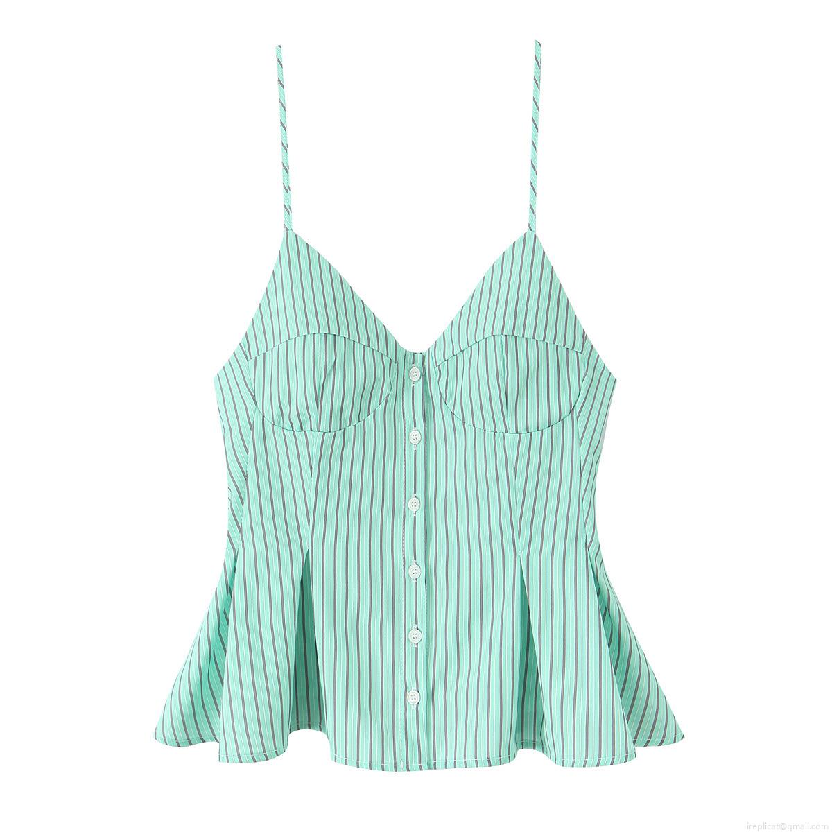 • Sexy Women V Neck Button Up Peplum Camisole Top Slim Fit Striped Poplin Ruffle Tank Top For Summer Vacation Party Girls Sleeveless Shirt