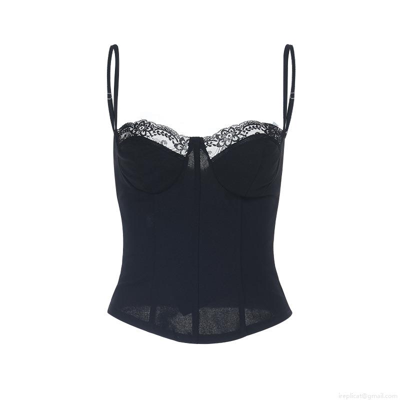 • Sexy Women's Lace Trim Corset Top Sleeveless Spaghetti Strap V-Neck Camisole With Back Zipper Fishbone Support Retro Streetwear Party Clubwear Tank Top