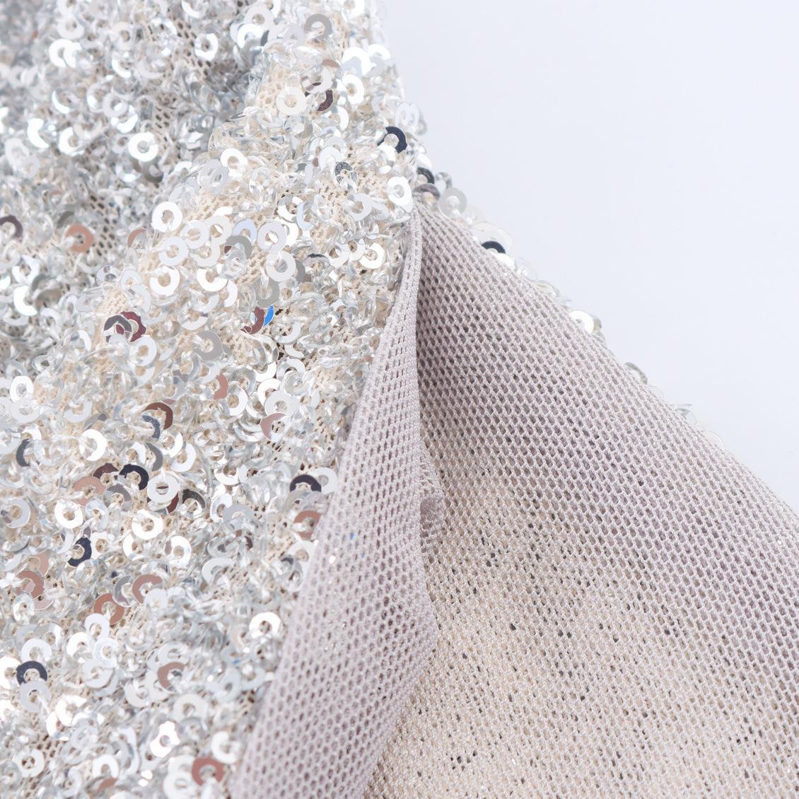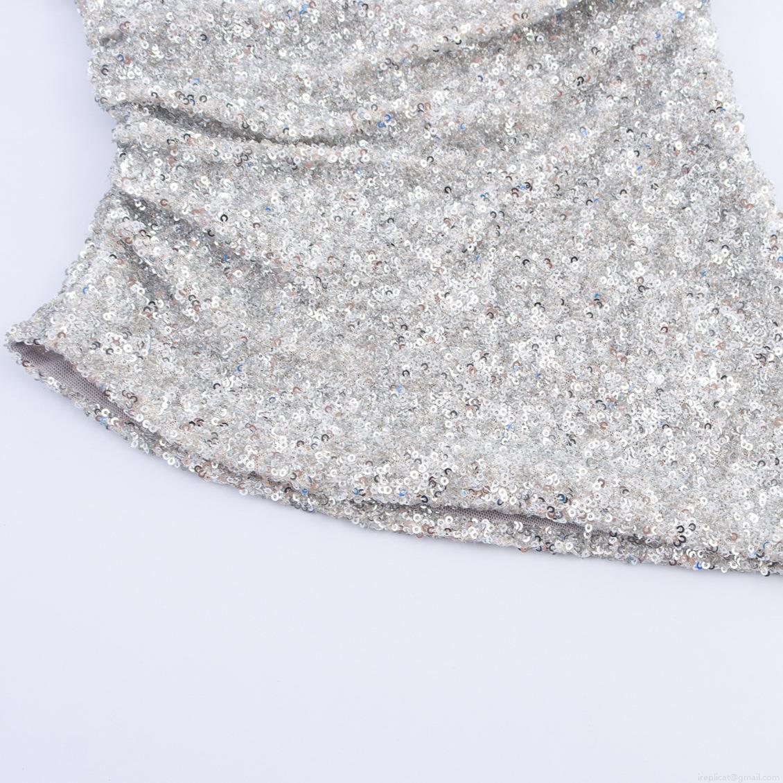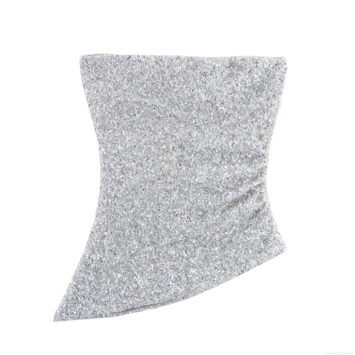 • Sexy Women's Silver Sequin Strapless Top Asymmetric Hem Backless Polyester Spandex Shimmering Slim Fit Party Clubwear Bodycon Tank Top