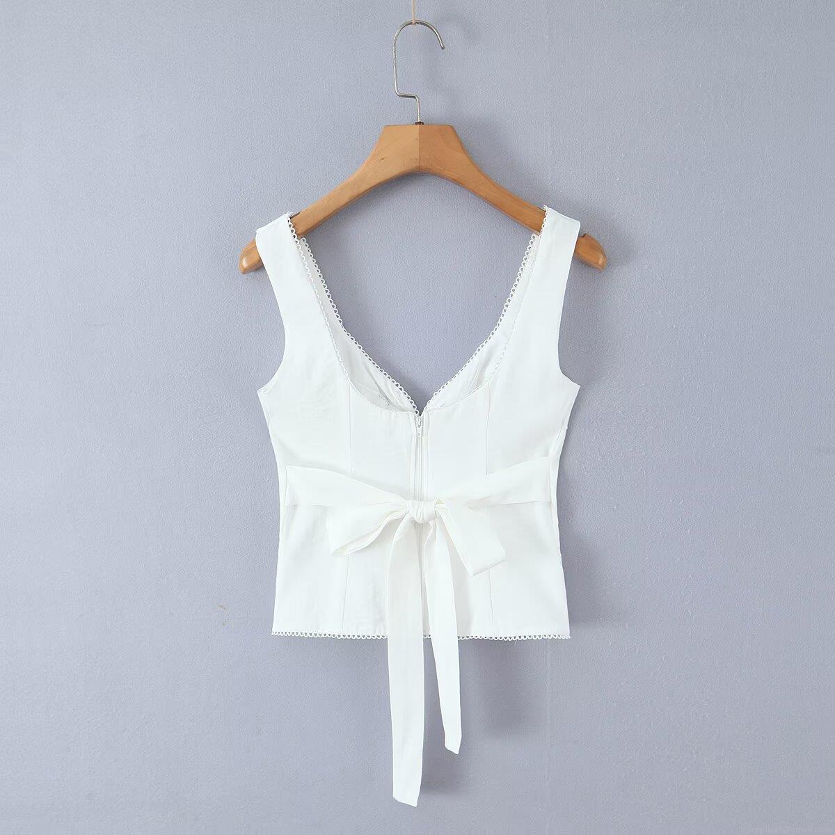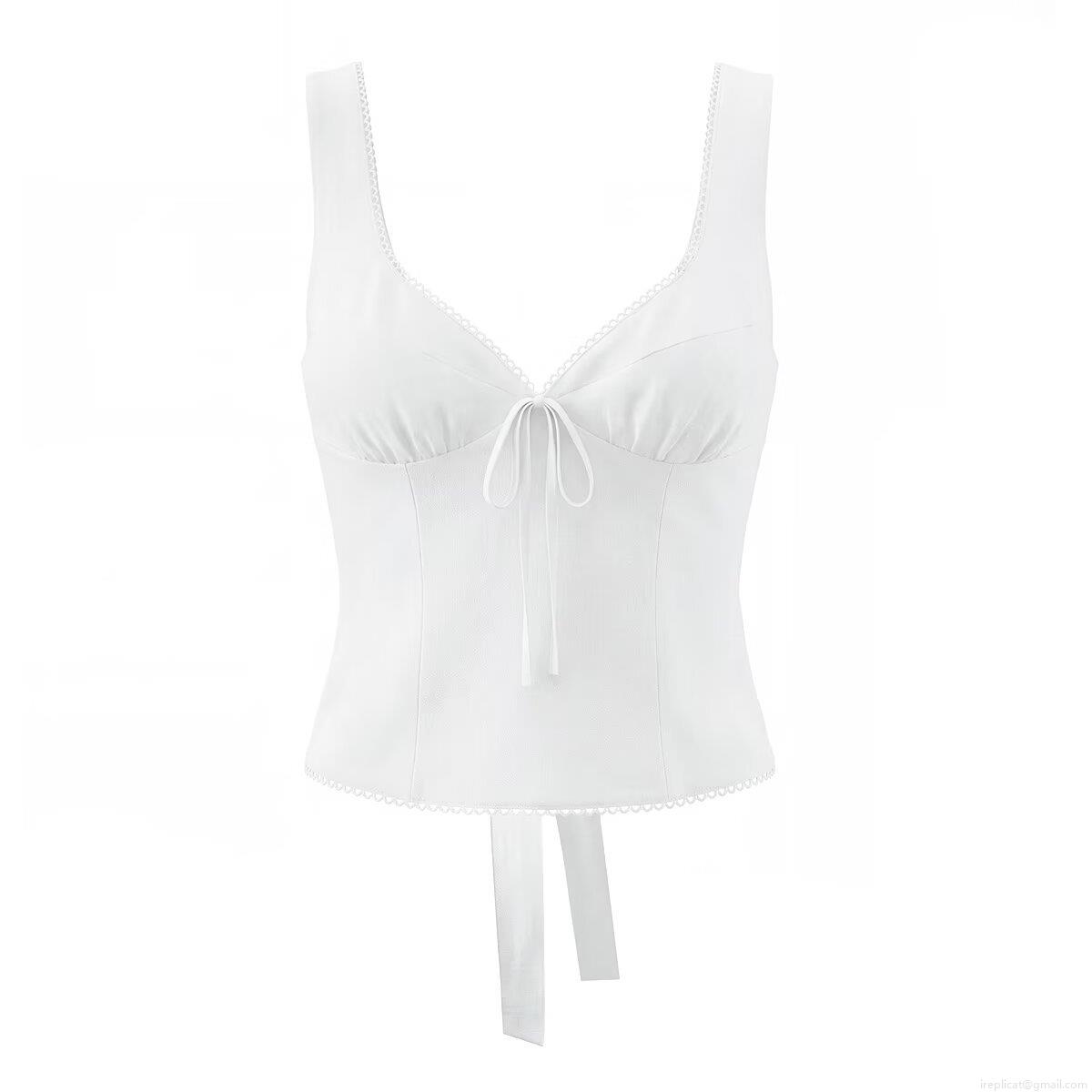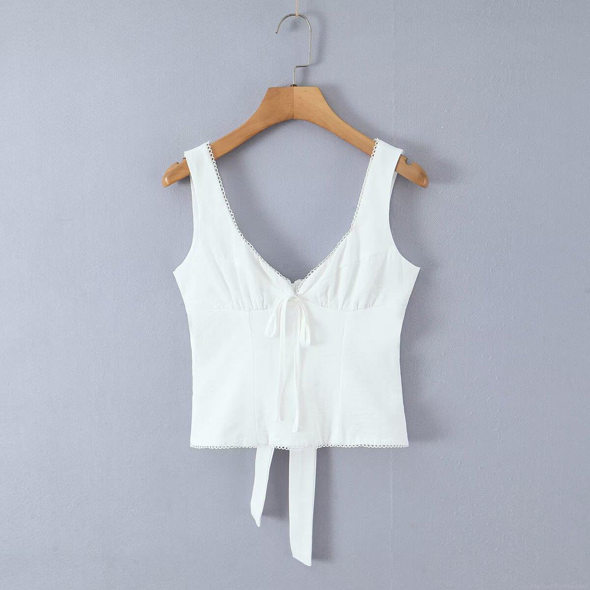 • Sexy Women's White V-Neck Camisole With Lace Trim And Bow Tie Cotton Blend Back Zipper Slim Fit Crop Tank Top For Summer Party Clubwear Streetwear