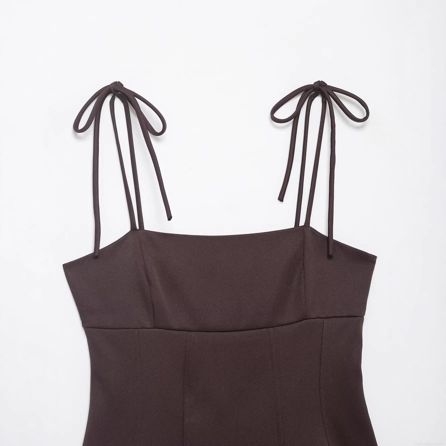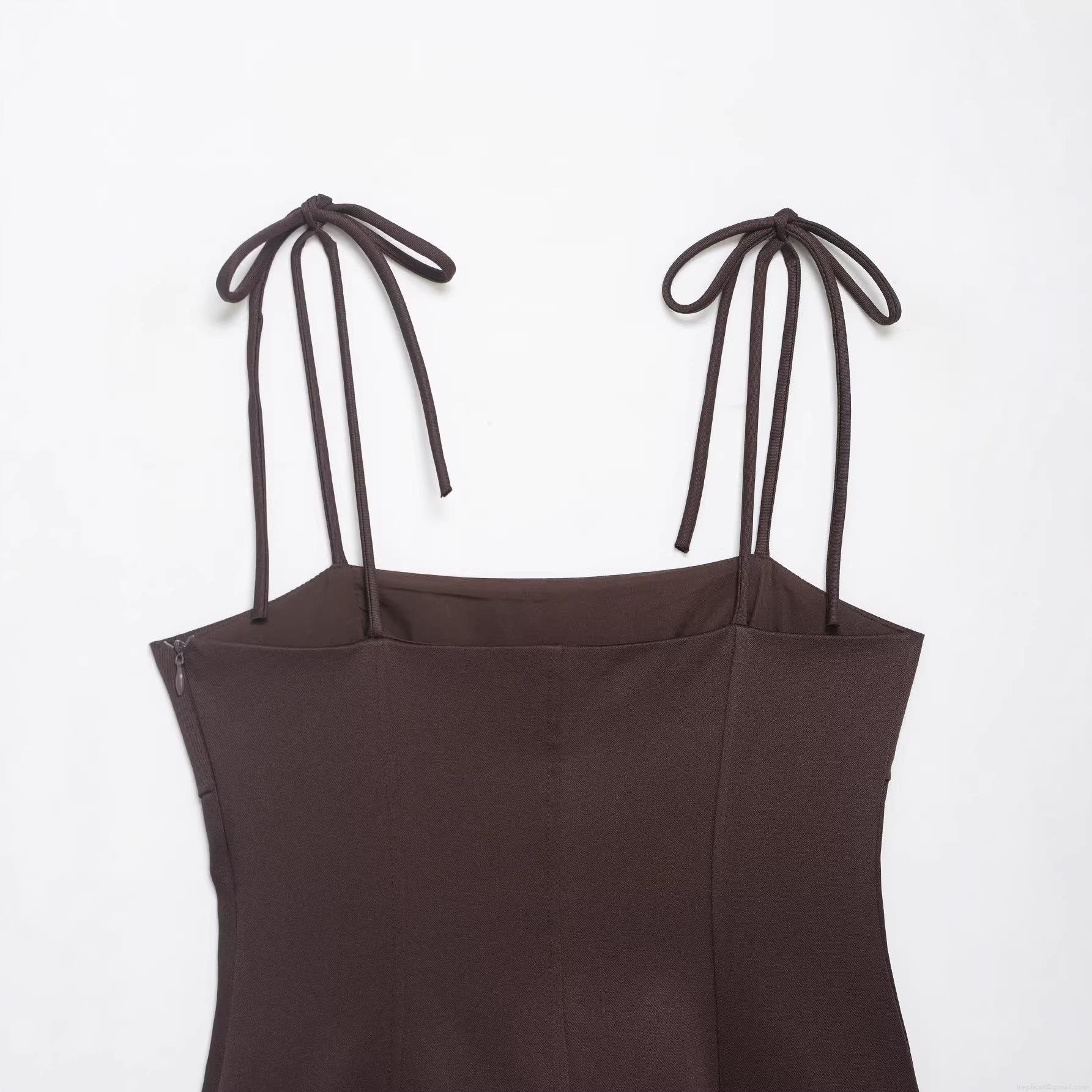 • Summer Women Coffee Brown Cotton Blend Butterfly Tie Shoulder Strap Tank Top Sexy Square Neck Slim Fit Peplum Cami Top Elegant Sleeveless Streetwear Fashion