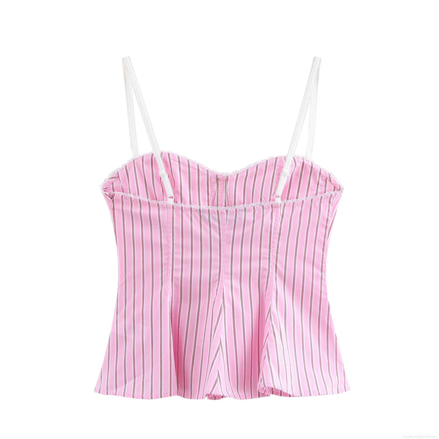 • Sweet Women Pink Striped Camisole Lace Trim Sweetheart Neckline Corset Tank Top Slim Fit Sleeveless Crop Top For Summer Party Beach Clubwear Casual Girly Style Fashion Clothing