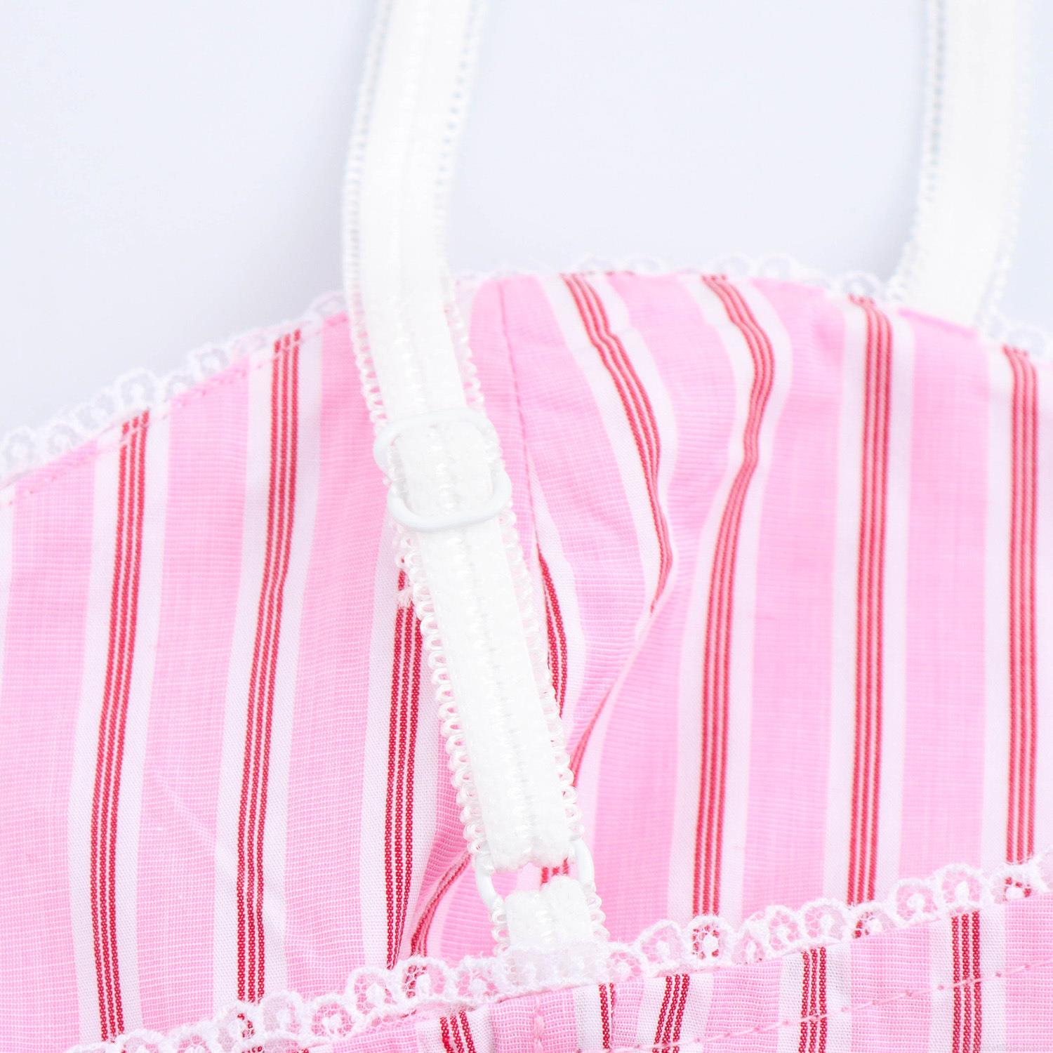 Sweet Women Pink Striped Camisole Lace Trim Sweetheart Neckline Corset Tank Top Slim Fit Sleeveless Crop Top For Summer Party Beach Clubwear Casual Girly Style Fashion Clothing