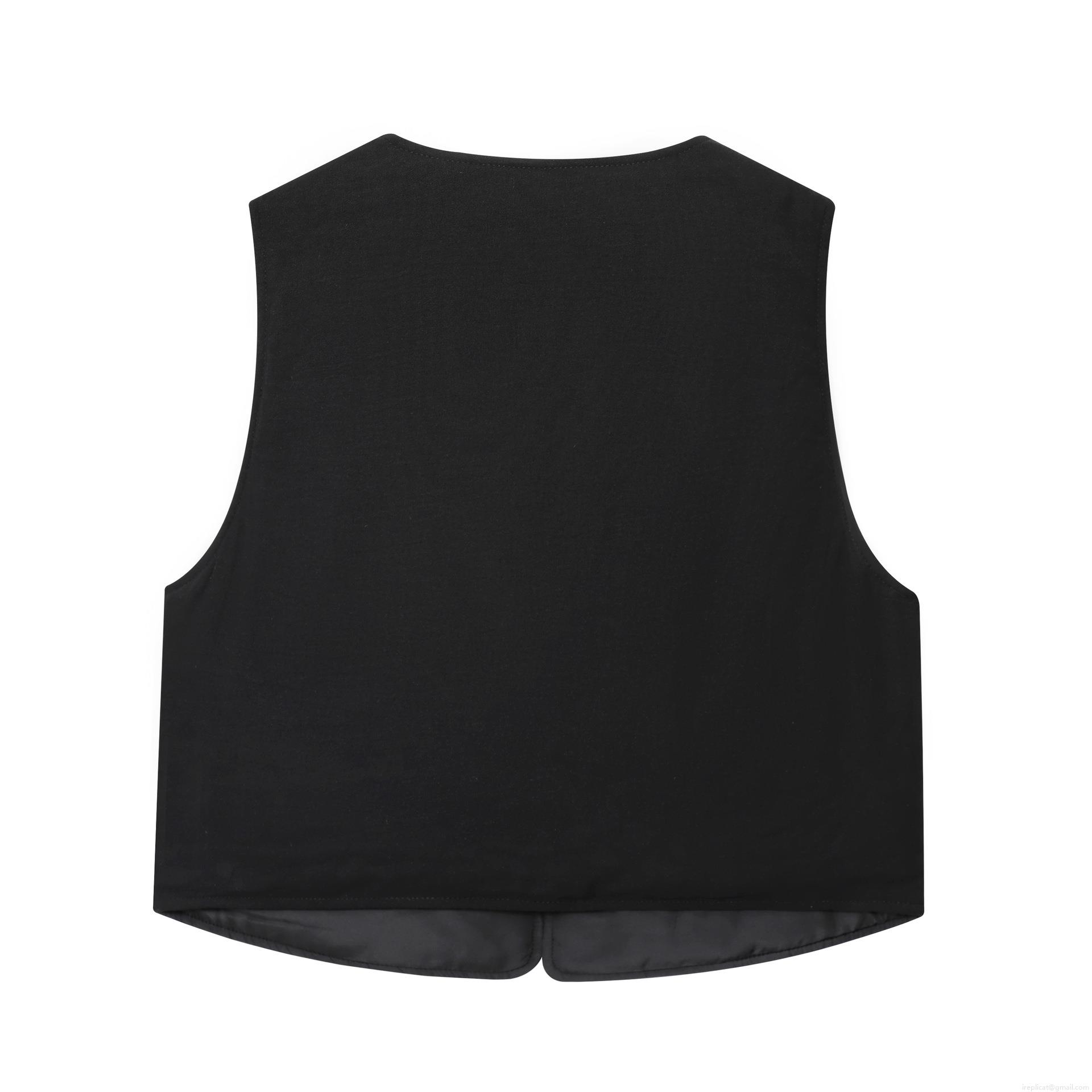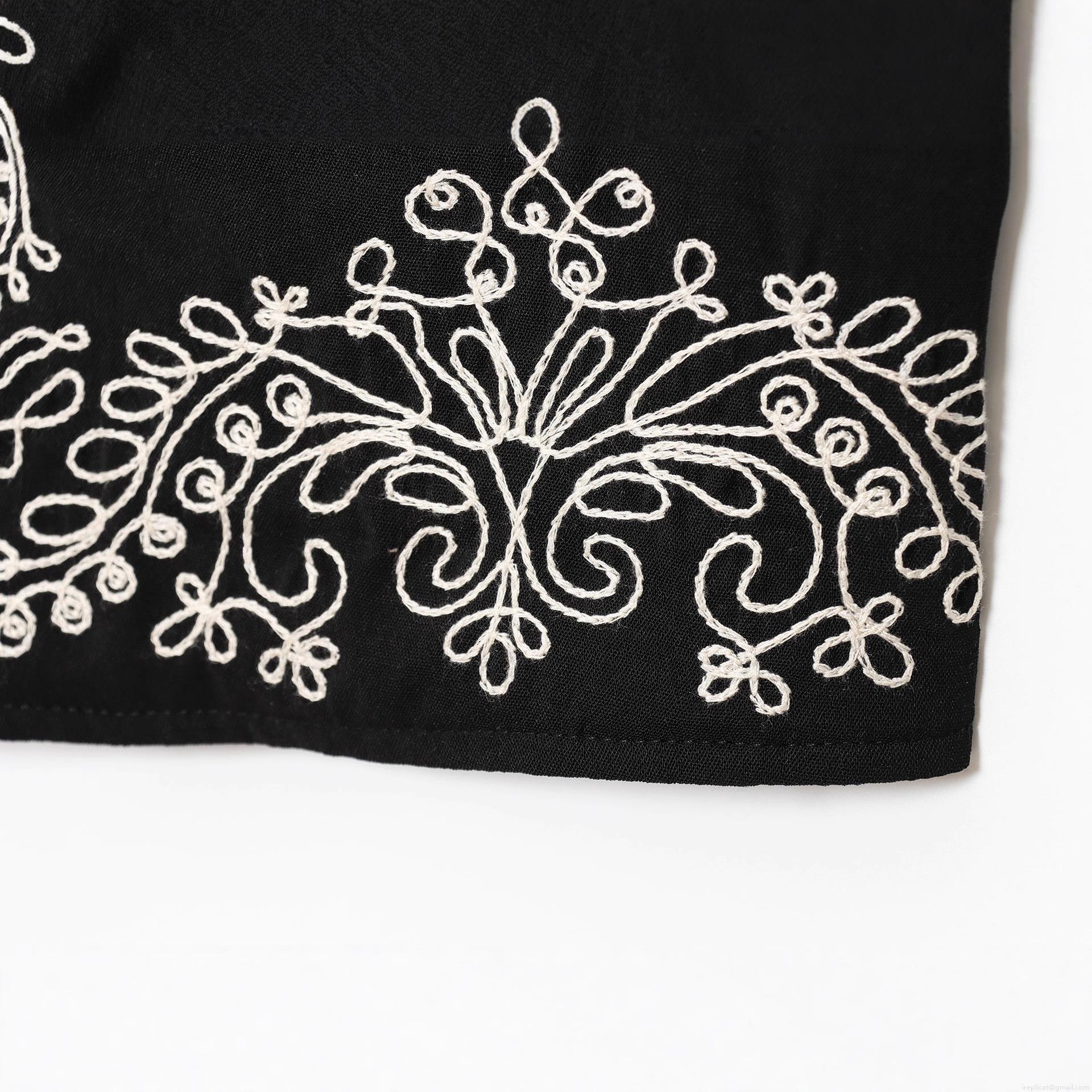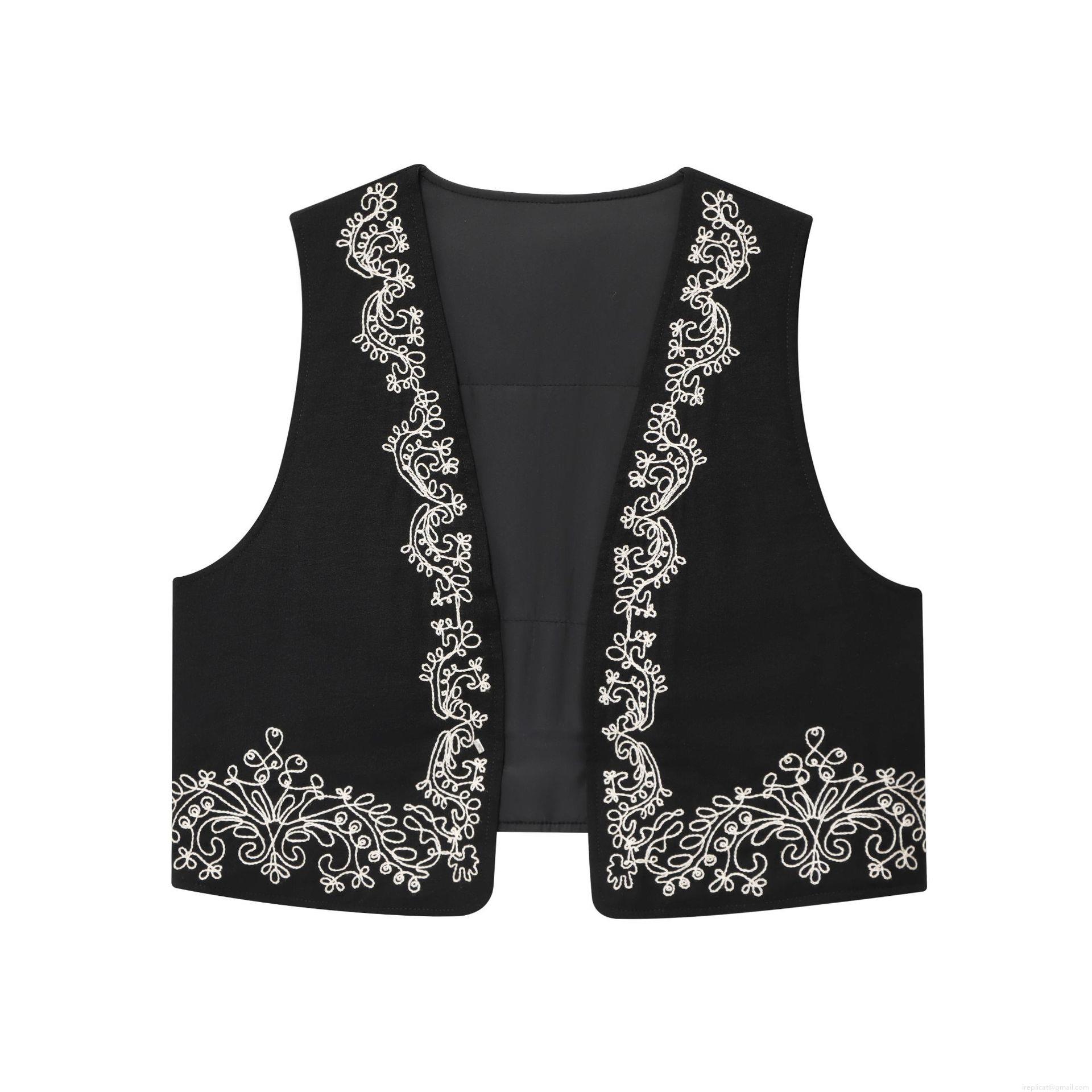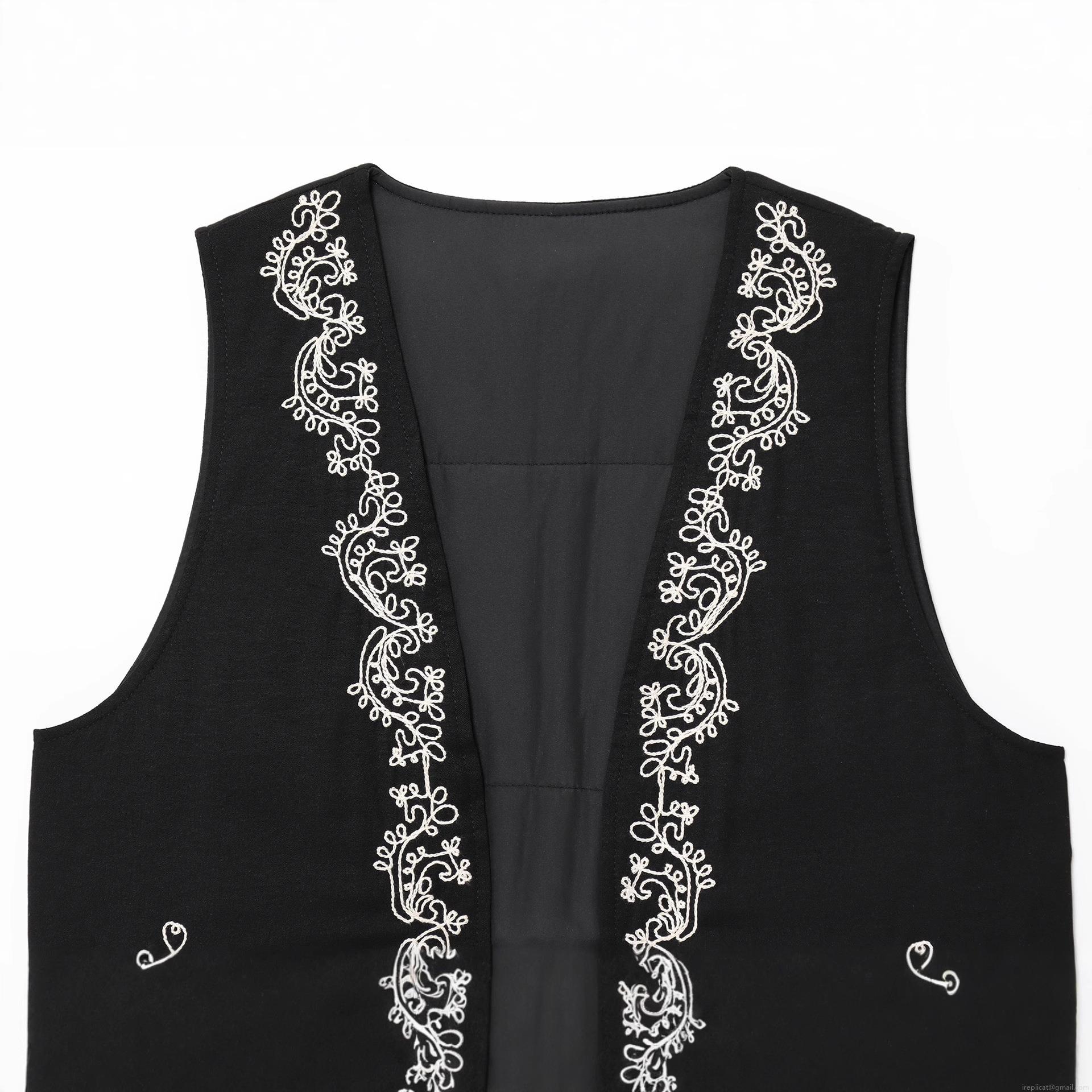 • Vintage Women Black Embroidery Vest Bohemian V-Neck Open Front Sleeveless Waistcoat Ethnic Style White Scrollwork Embroidered Top for Women Casual Streetwear