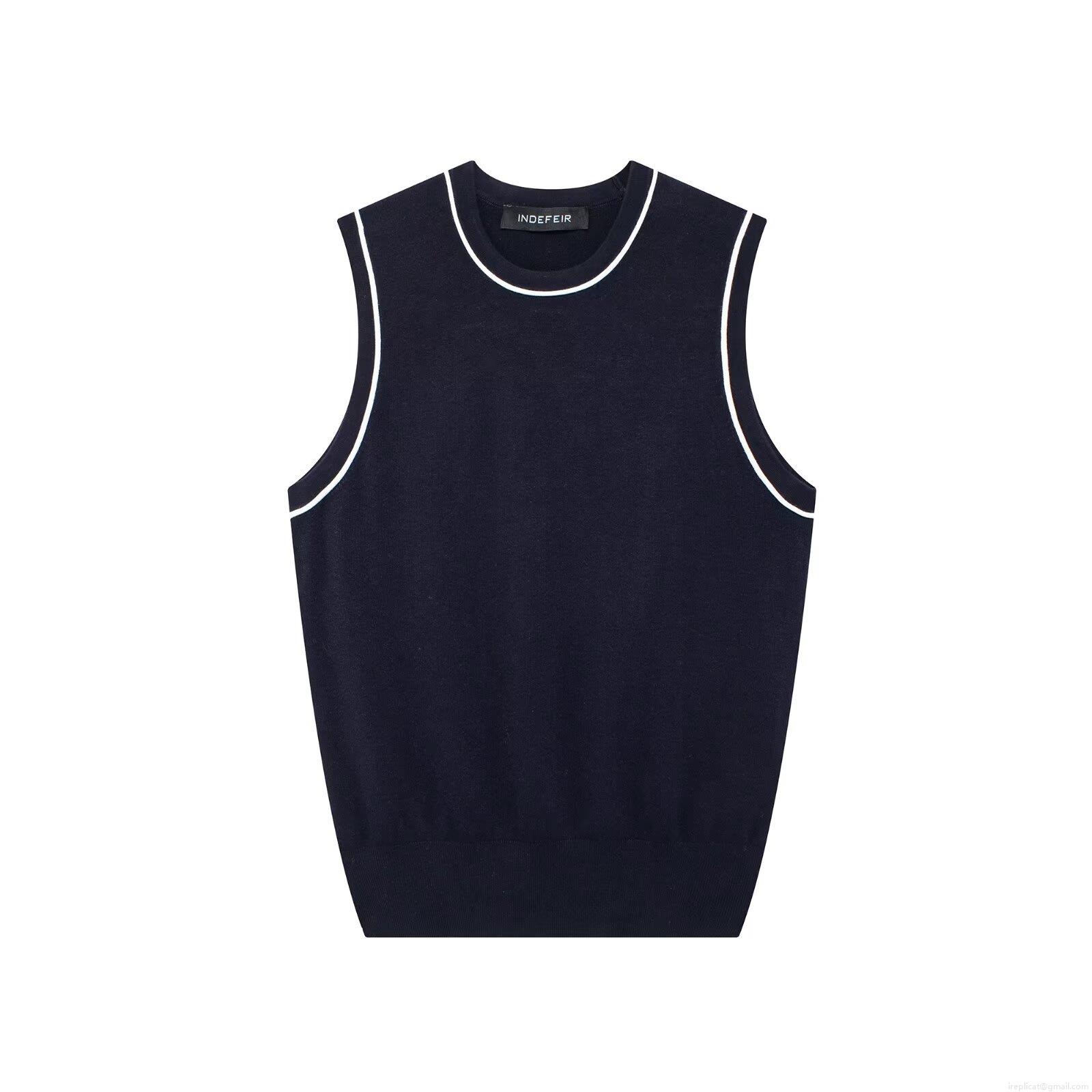 Women Autumn Round Neck Contrast Trim Knitted Vest Slim Fit Sleeveless Crop Top Polyester Streetwear Casual Tank Top Fashion Pullover Vest