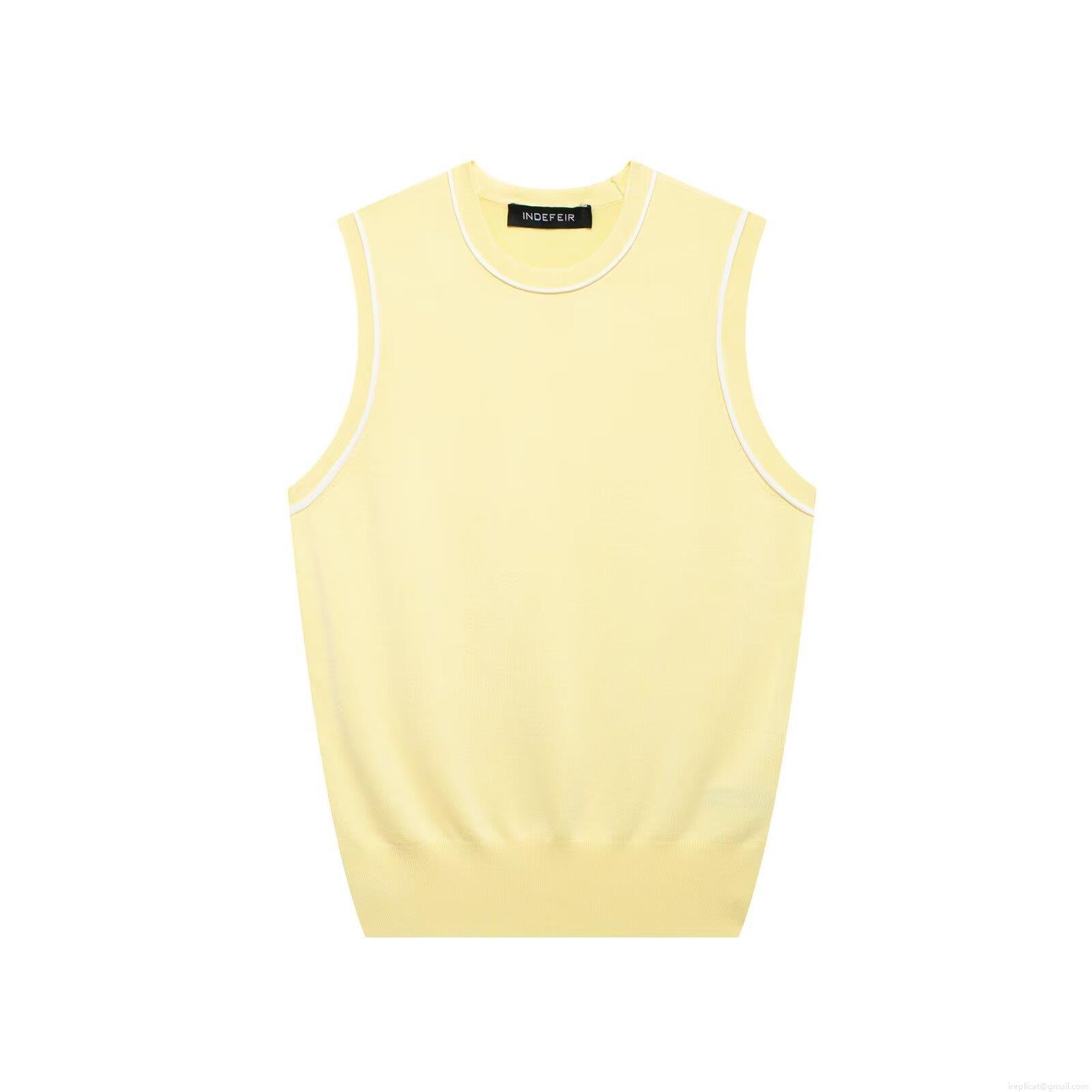 • Women Autumn Round Neck Contrast Trim Knitted Vest Slim Fit Sleeveless Crop Top Polyester Streetwear Casual Tank Top Fashion Pullover Vest