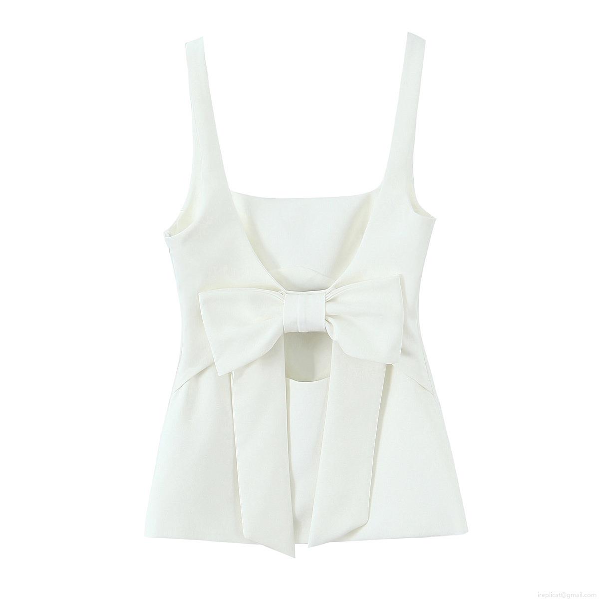 • Women Backless Bow Tank Top Square Neck Wide Strap Acrylic Spandex Woven Sleeveless Slim Fit Cropped Top For Summer Party Dating Streetwear