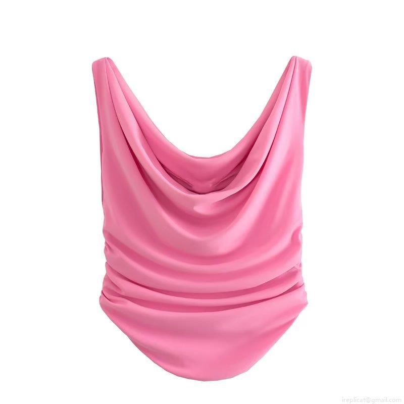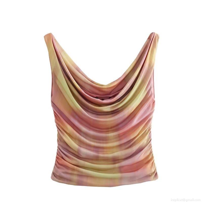 • Women Cowl Neck Ruched Sleeveless Tank Top Y2K Streetwear Cropped Polyester Shirt Summer Sexy Solid Color Tie Dye Camisole