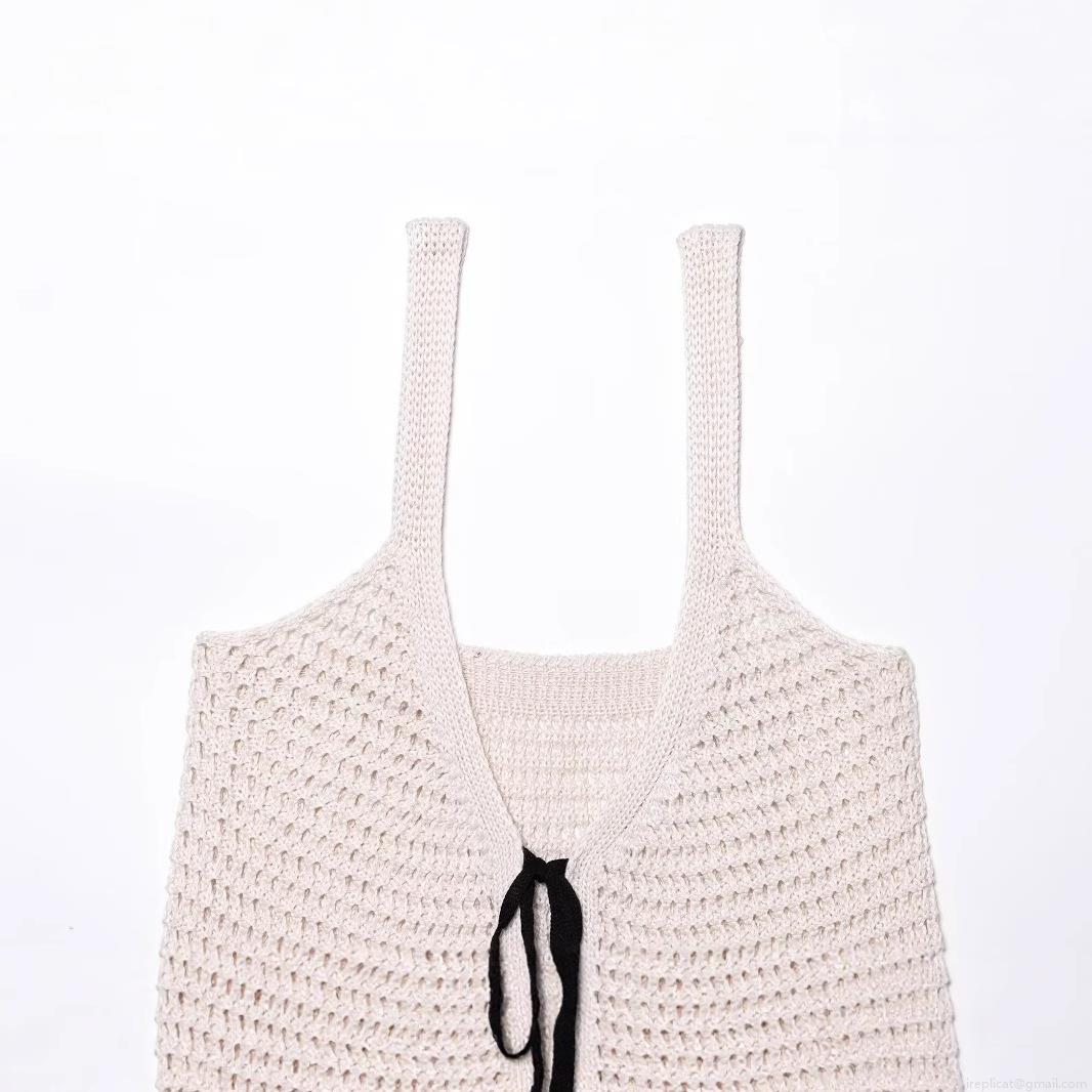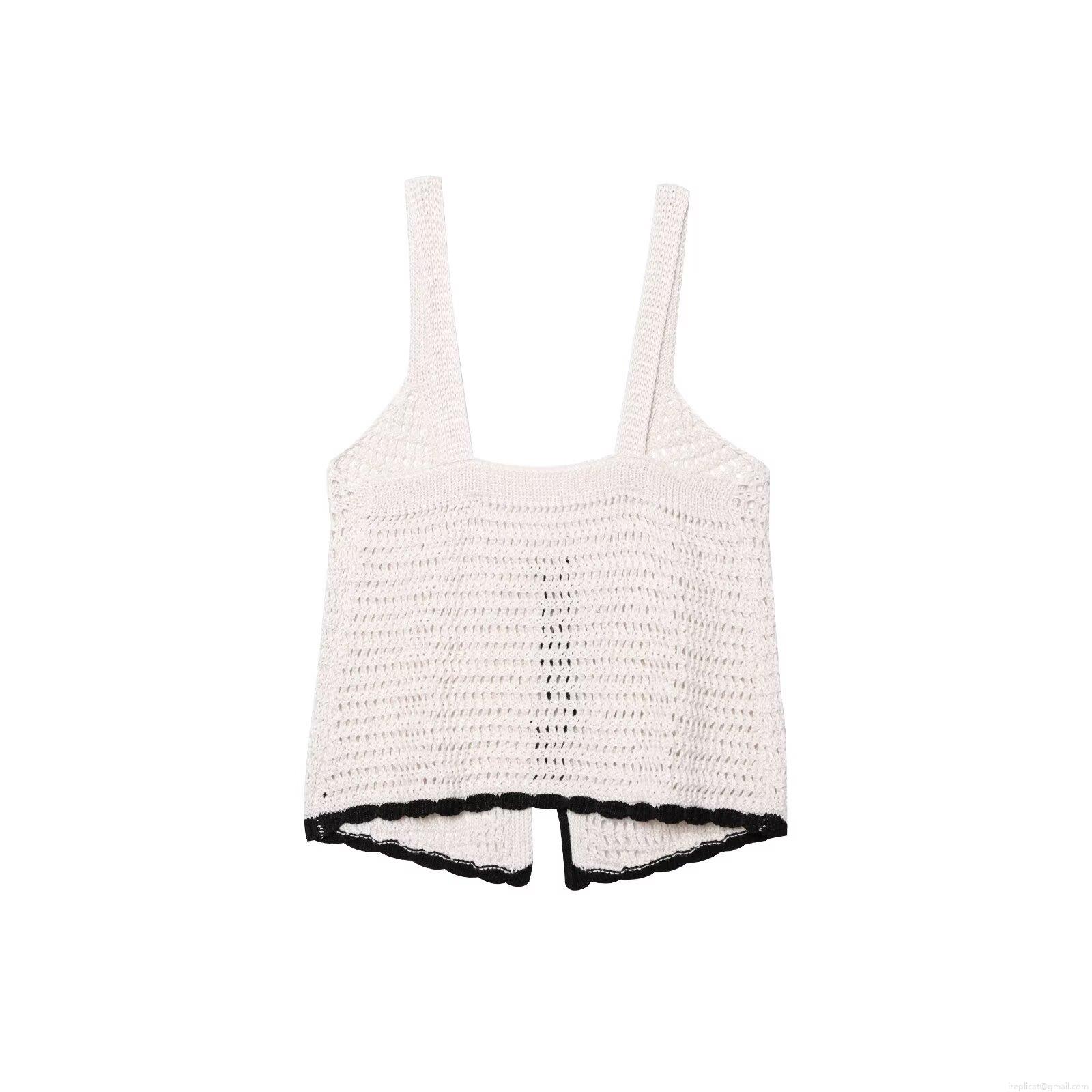 • Women Crochet Knit Camisole Top Hollow Out Polyester Double Bow Tie Front Contrast Trim Sleeveless Crop Top Sweet Chic Beach Vacation Tank Top