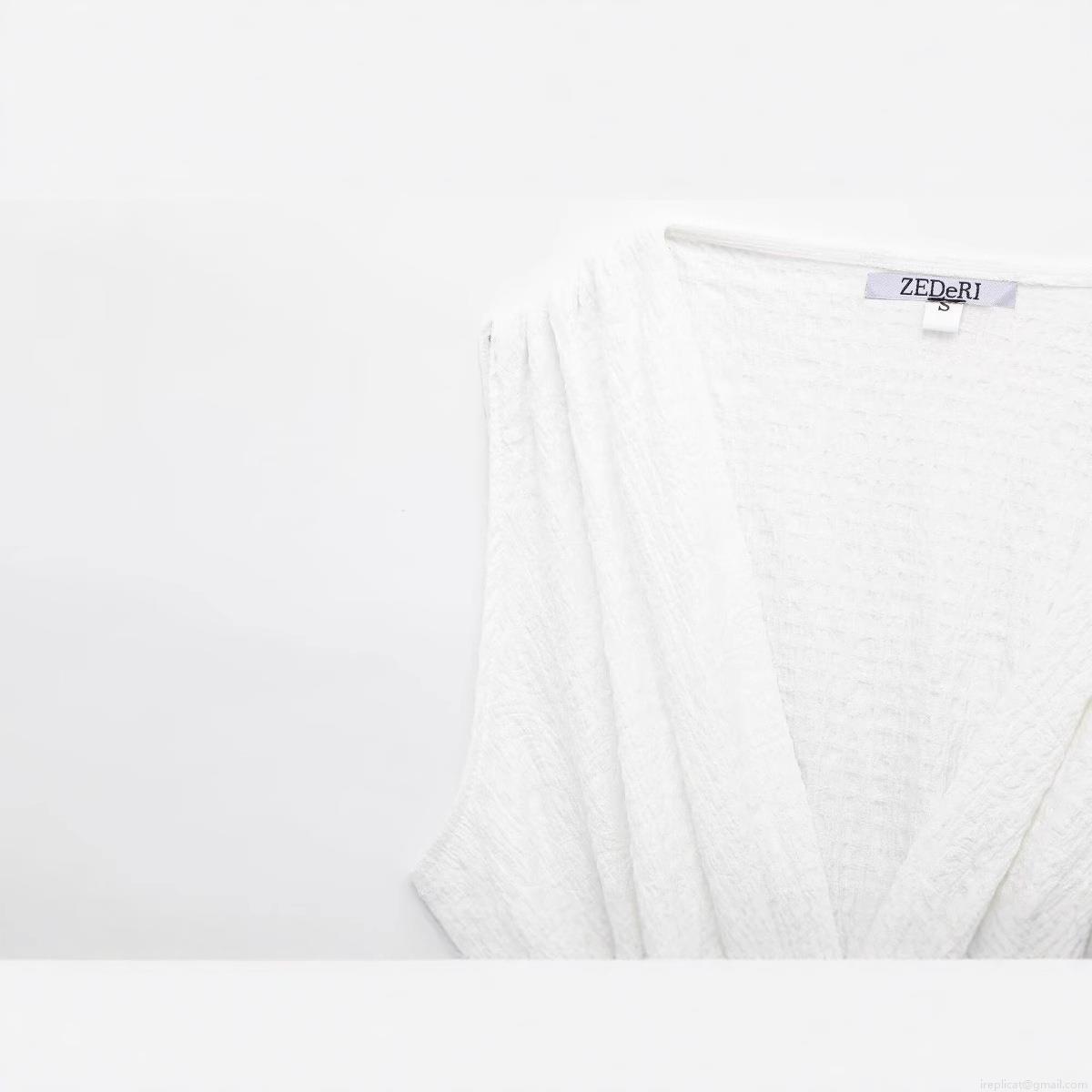 Solid Color, Bow Decoration, Ruffles, Deep V, Wrinkled Texture, Peplum