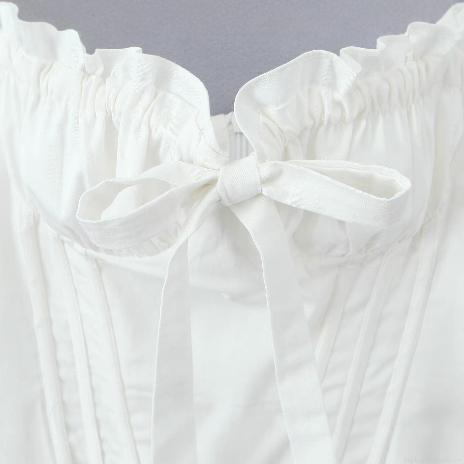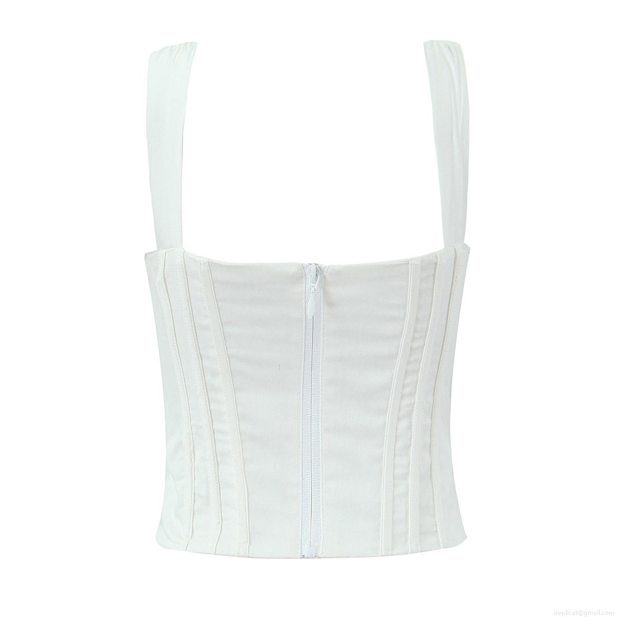 Women Fashion Corset Top Cotton Blend Fishbone Slim Fit Camisole Sleeveless Bow Decor Back Zipper Crop Top Streetwear Summer Party Dating