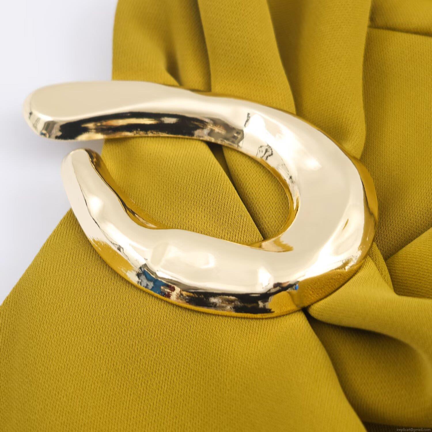 Solid Color, Metal Buckle, Neckband Design, Pleat Details
