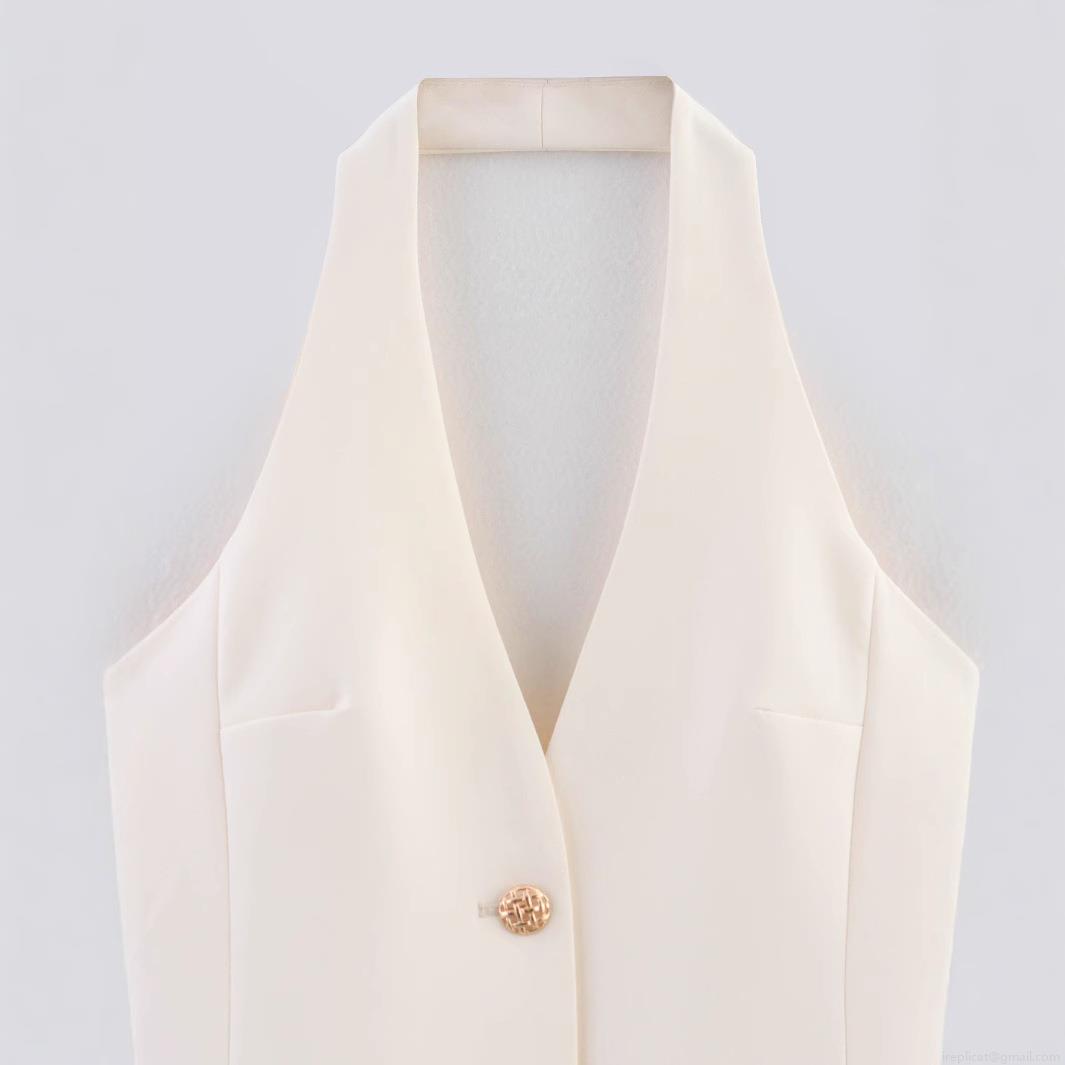 • Women Fashion Sexy Halter Neck Suit Vest 100% Polyester Slim Fit Backless Deep V Neck Sleeveless Tank Top For Summer Streetwear Office Lady