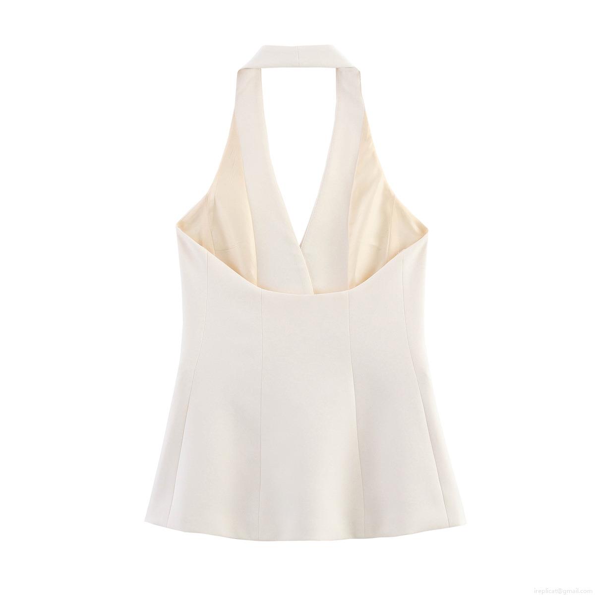 Women Fashion Sexy Halter Neck Suit Vest 100% Polyester Slim Fit Backless Deep V Neck Sleeveless Tank Top For Summer Streetwear Office Lady
