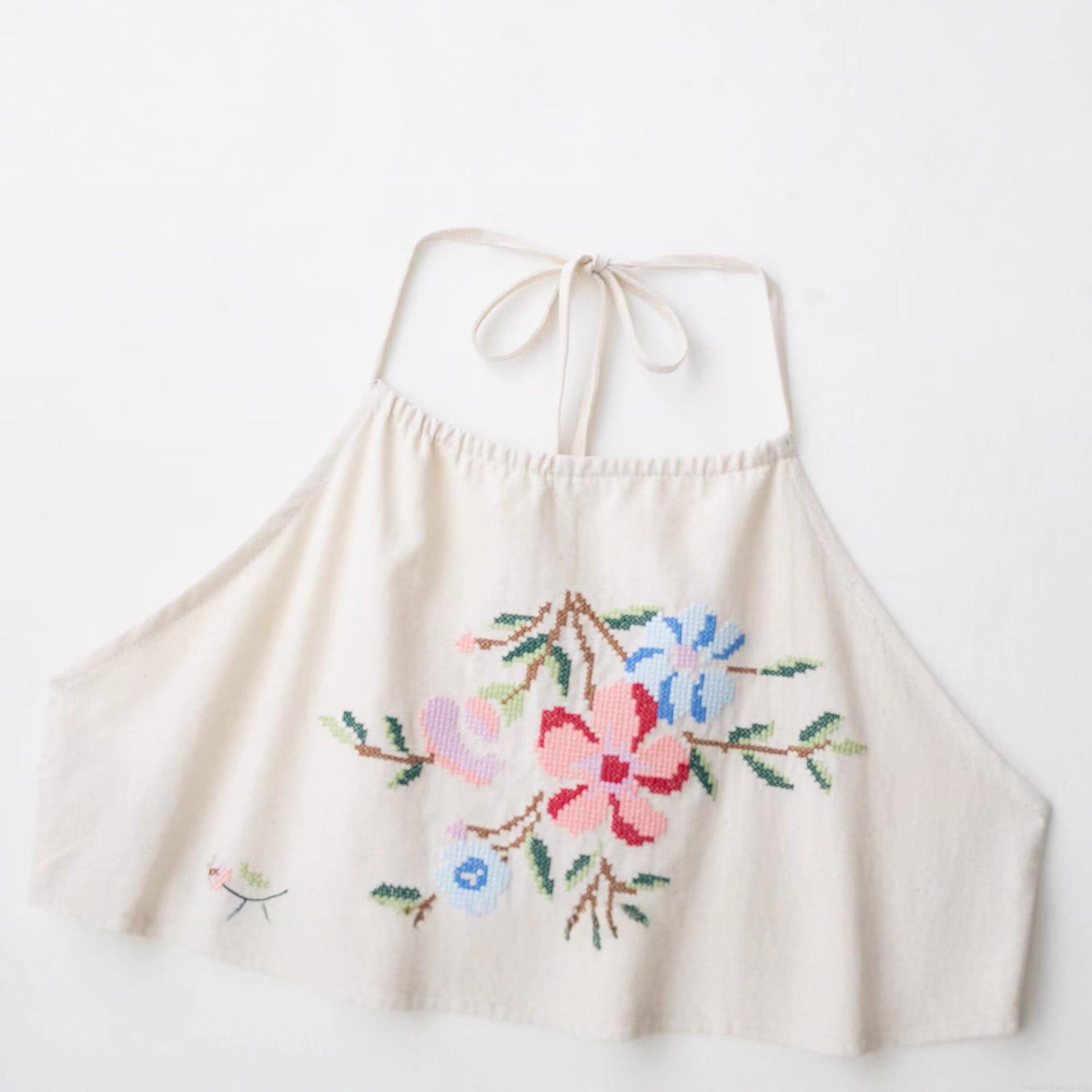 • Women Halter Backless Embroidered Camisole Beige Polyester Floral Lace-up Crop Top Summer Streetwear Fashion Western Style Sleeveless Tank Top For Dating Daily