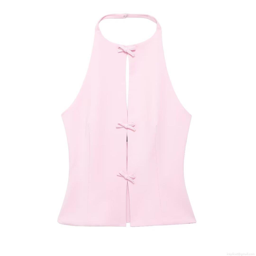 • Women Halter Neck Backless Bow Tie Top Sexy Hollow Out Sleeveless Camisole Polyester Solid Color Tank Top For Summer Party Streetwear Casual Women Tops