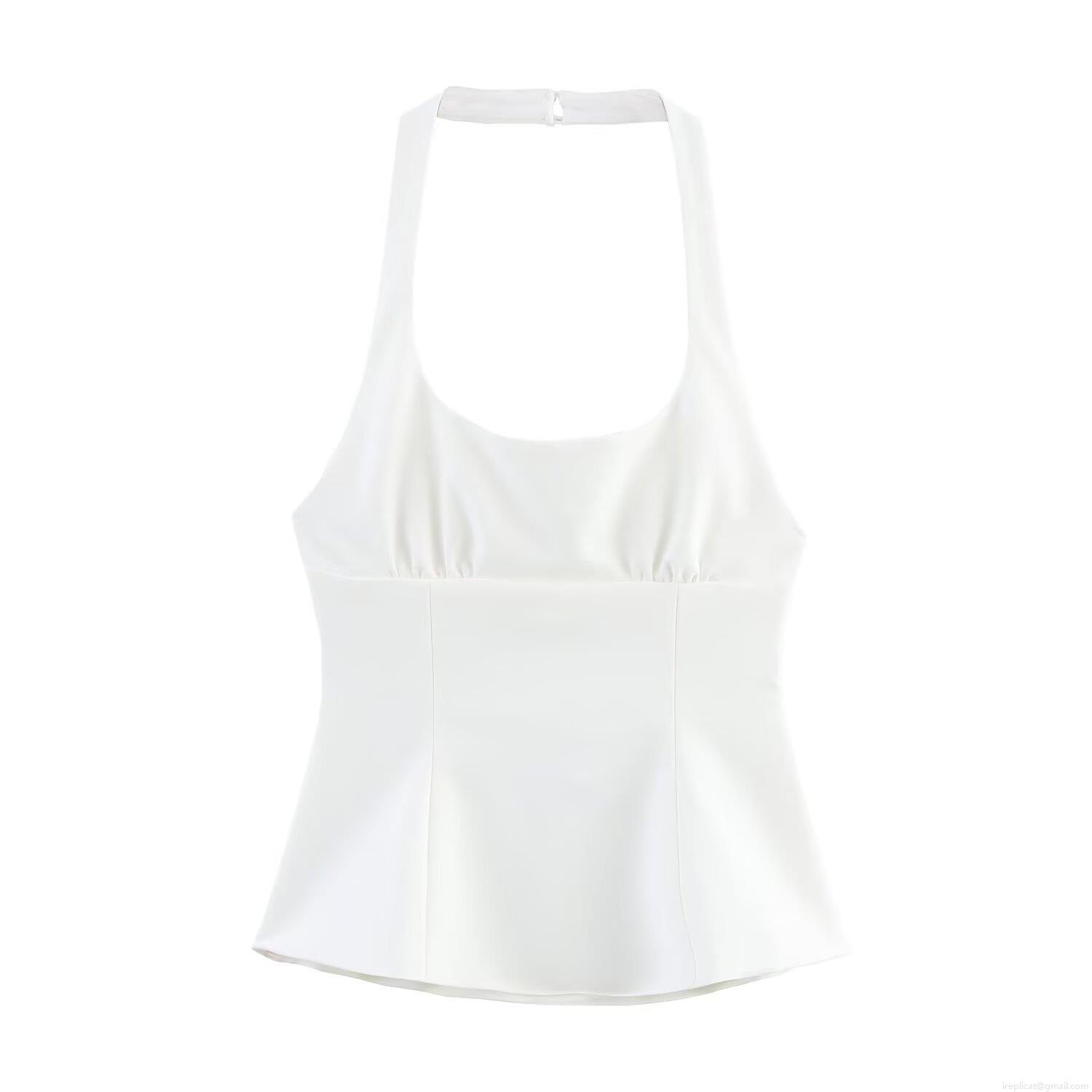 • Women Halter Neck Camisole Backless Bow Decor Tank Top Polyester Slim Fit Summer Vacation Streetwear Cami For Ladies