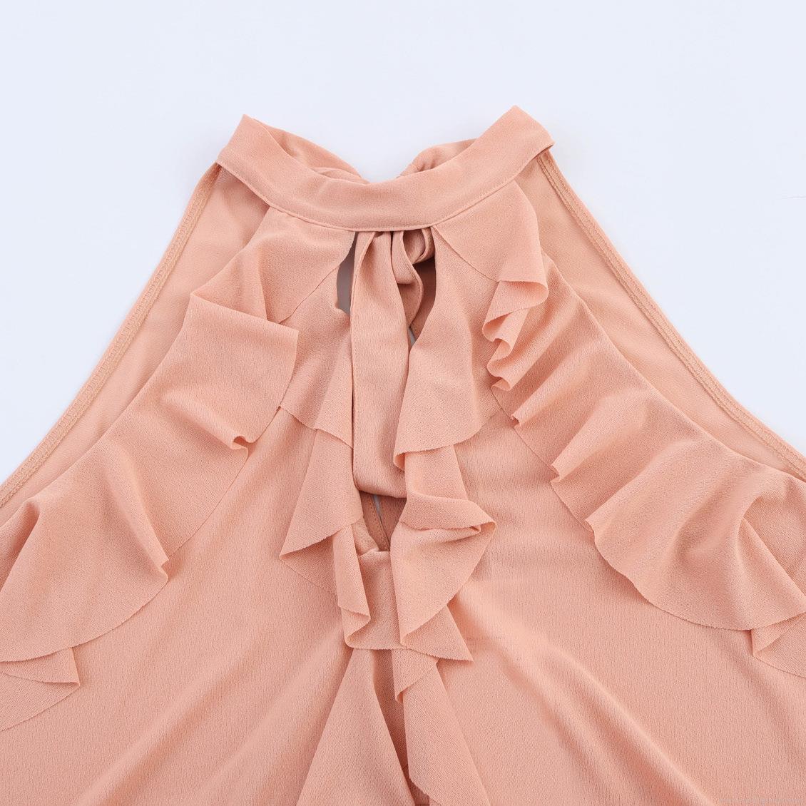 • Women Halter Neck Top Elegant Layered Ruffles Sleeveless Chiffon Blouse For Summer Casual Party Vacation Fashion Commuter Solid Color Tie Back Tank Top