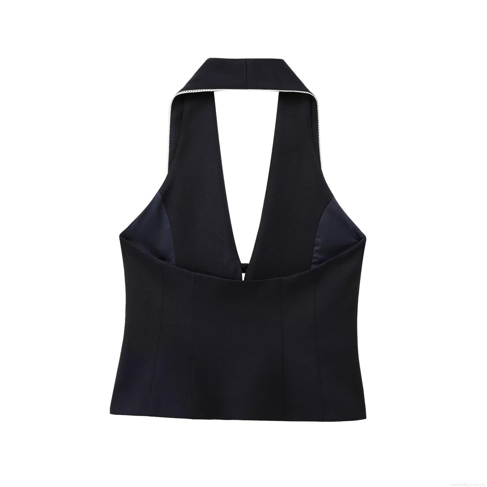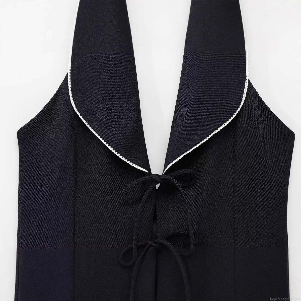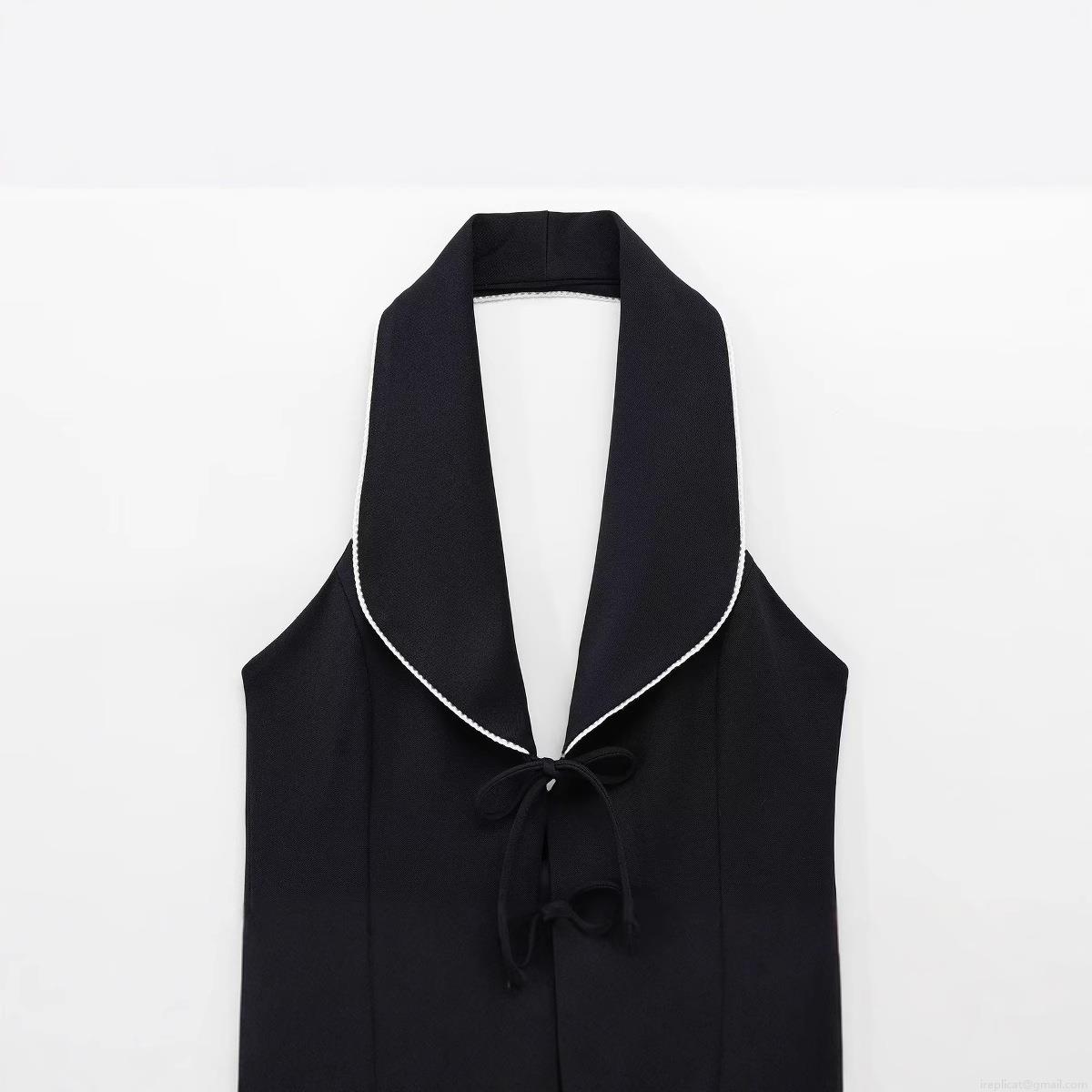 • Women Halter Vest Top Polyester Blend Contrast Piping Bow Tie Up Front Sleeveless V Neck Crop Top For Party Dating Sexy Socialite Style Slim Fit Backless Waistcoat