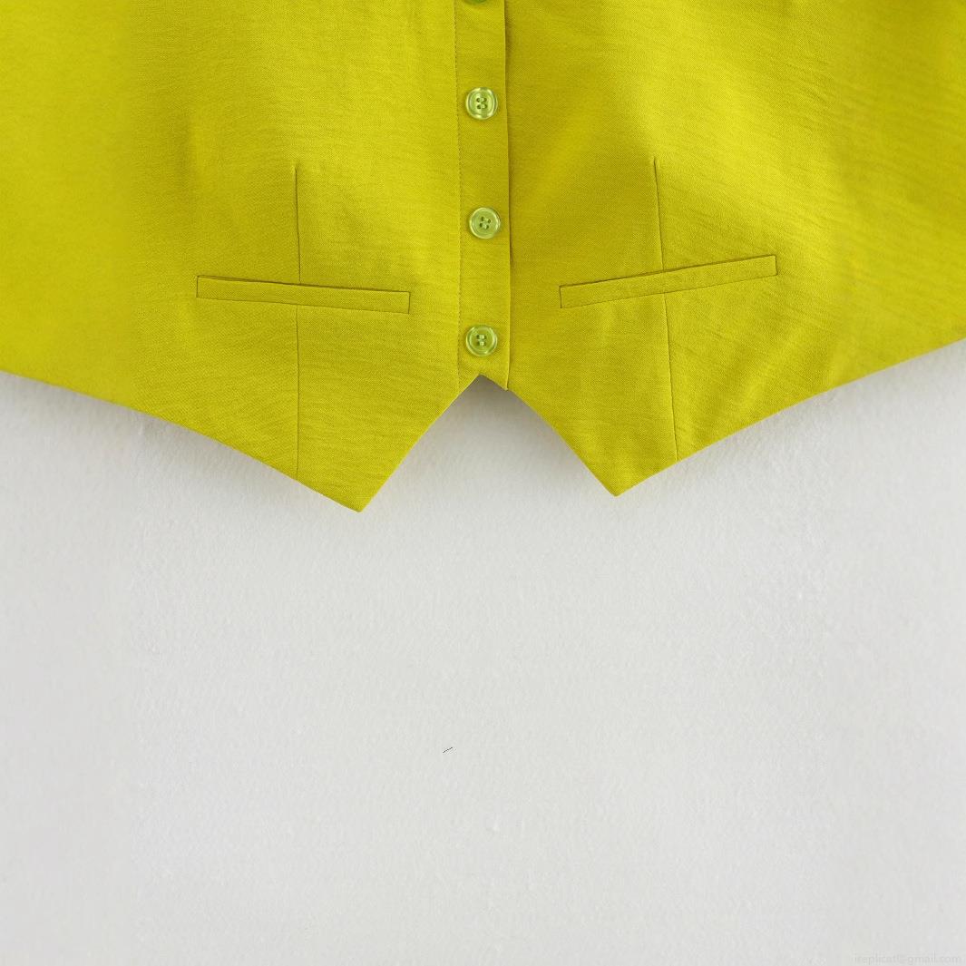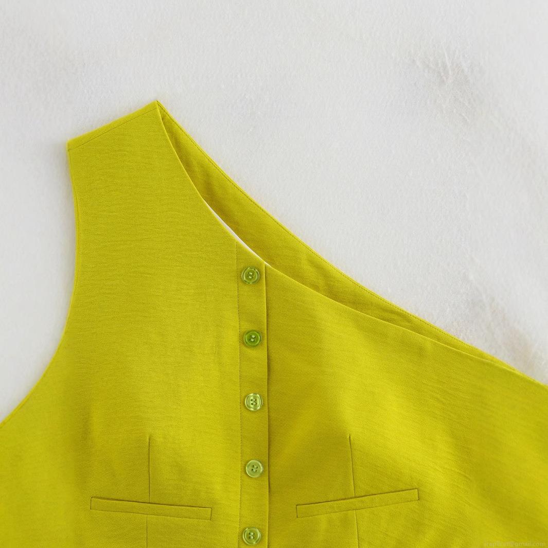 • Women One Shoulder Vest Top Polyester Woven Asymmetric Button Down Crop Top For Party Streetwear Sexy Solid Lime Green Sleeveless Shirt