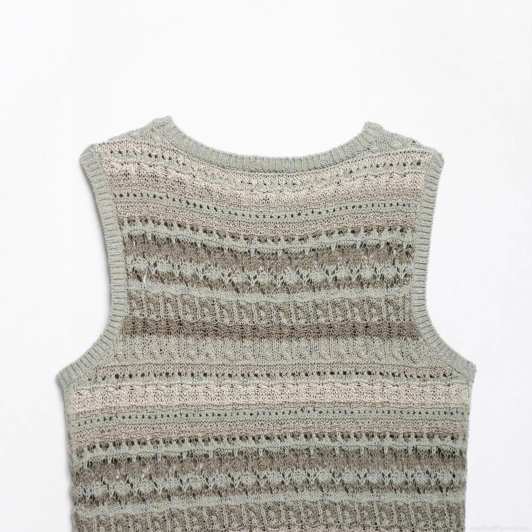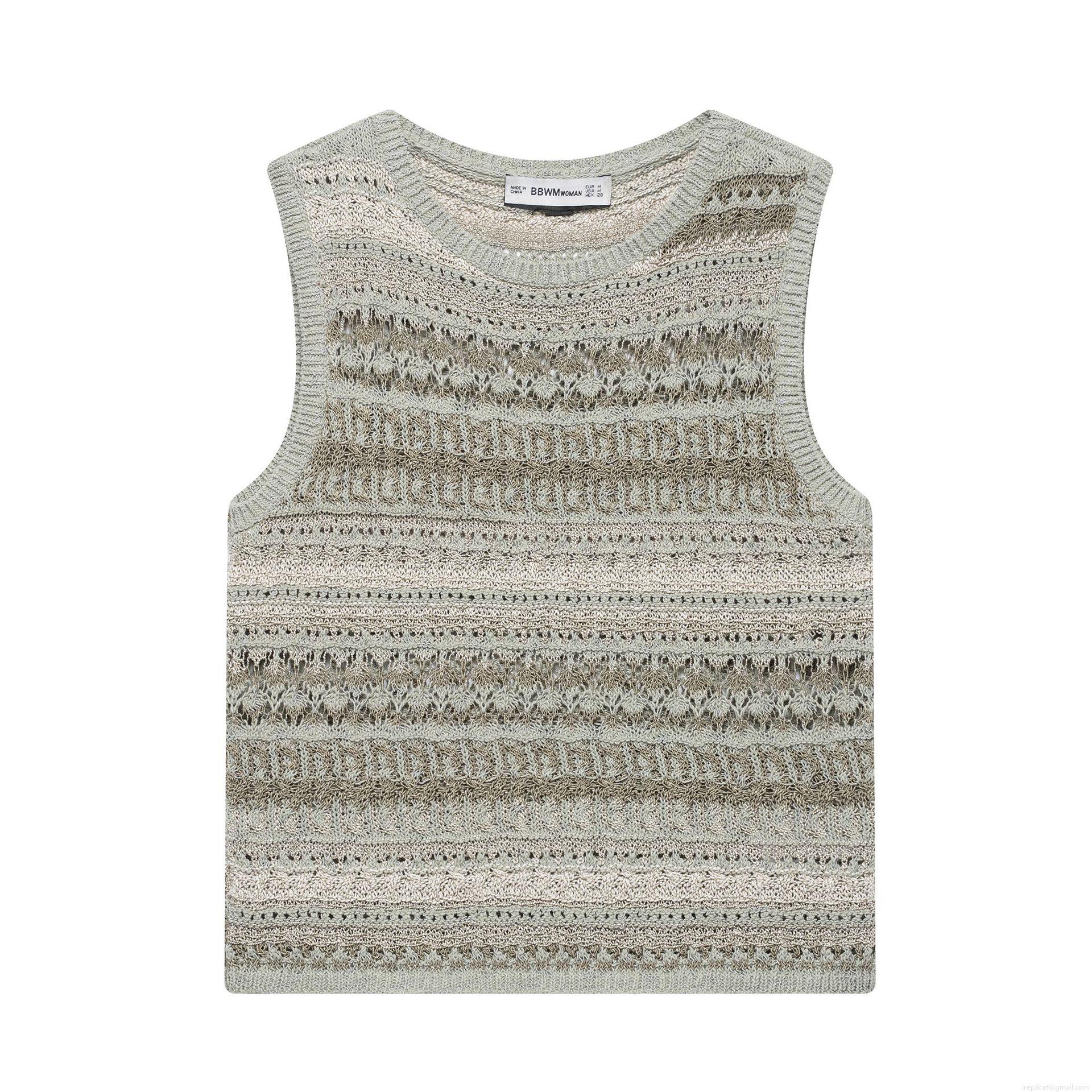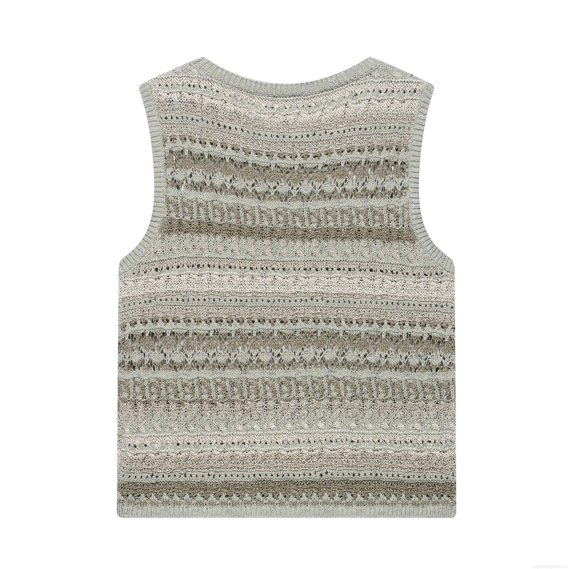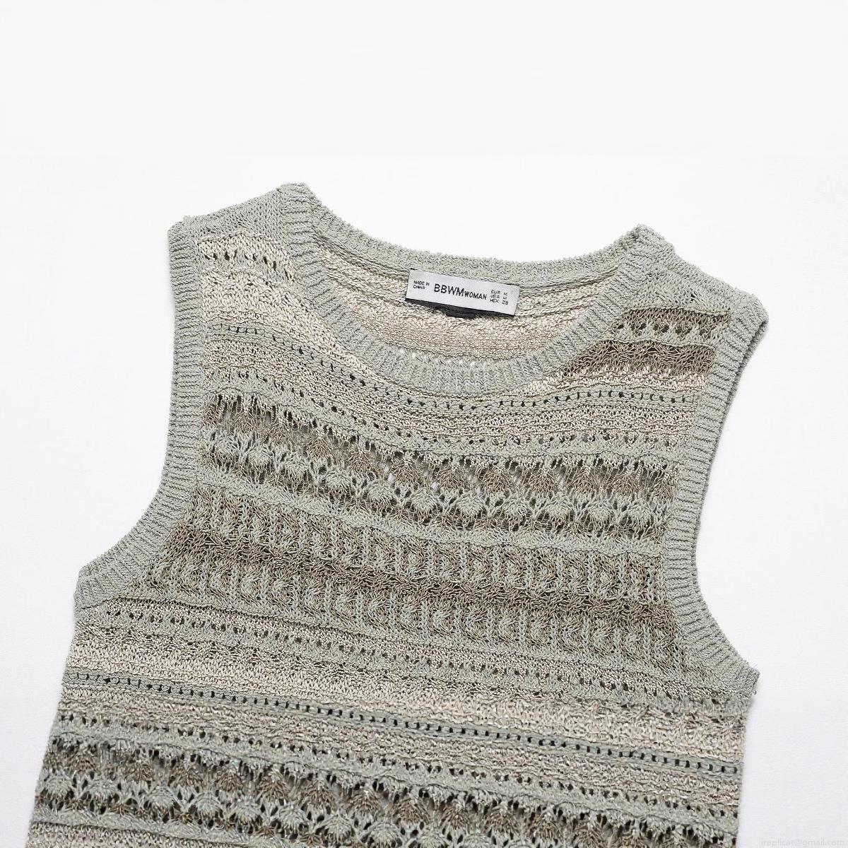 • Women Retro Openwork Knit Tank Top Sleeveless Crochet Stripe Vest Vintage Slim Fit Knitted Sweater Top For Summer Vacation