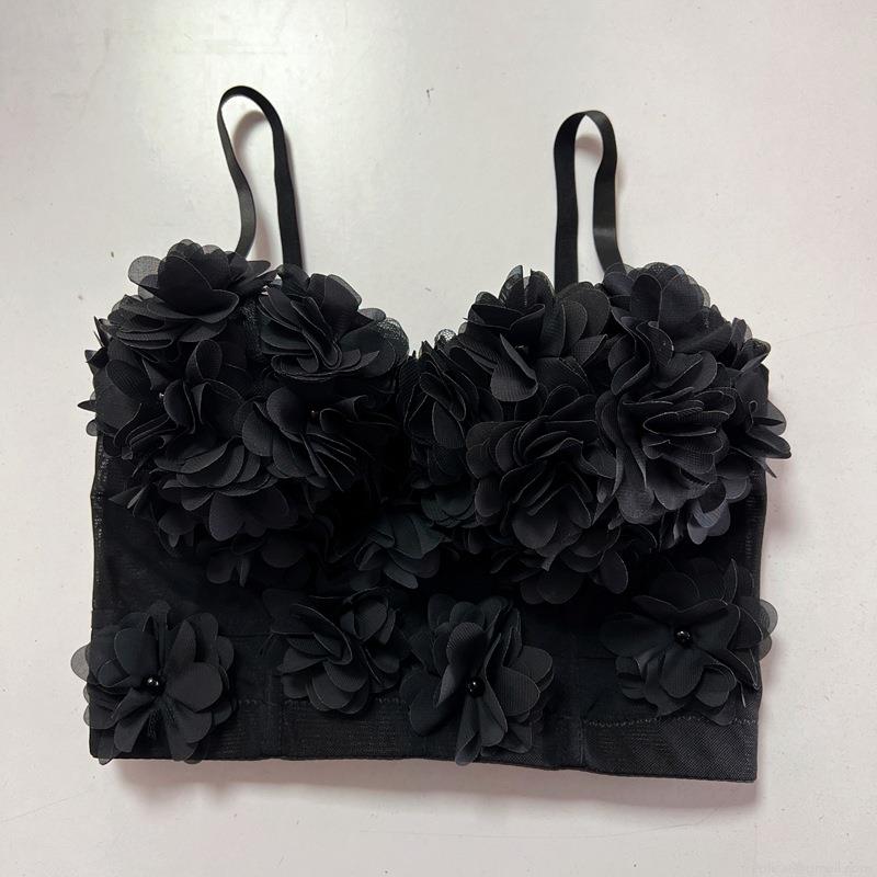 • Women Sexy 3D Floral Lace Mesh Corset Top Beaded Fishbone Bustier Camisole With Padded Cups Club Party Streetwear Sleeveless Vest