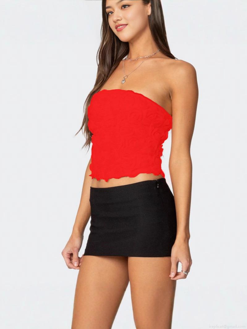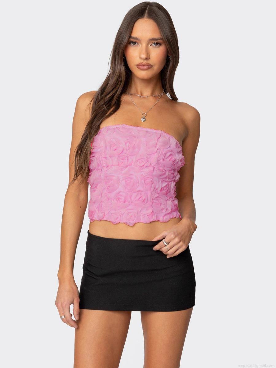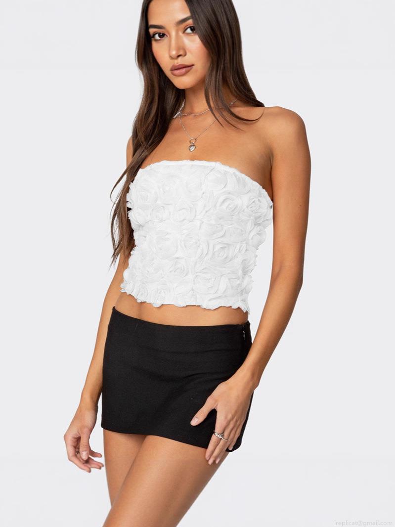• Women Sexy 3D Rose Flower Tube Top Slim Fit Strapless Crop Top For Summer Party Clubwear Polyester Spandex 3D Floral Texture Streetwear Pink White Red Black