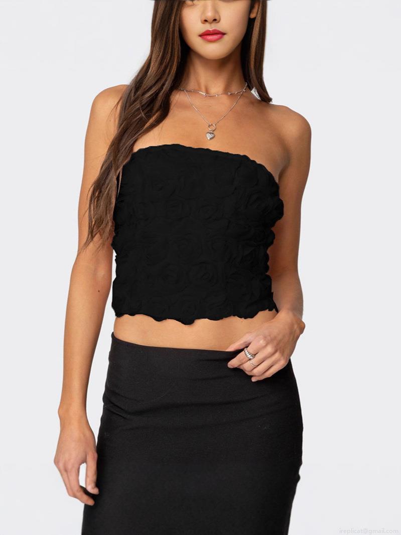 Women Sexy 3D Rose Flower Tube Top Slim Fit Strapless Crop Top For Summer Party Clubwear Polyester Spandex 3D Floral Texture Streetwear Pink White Red Black