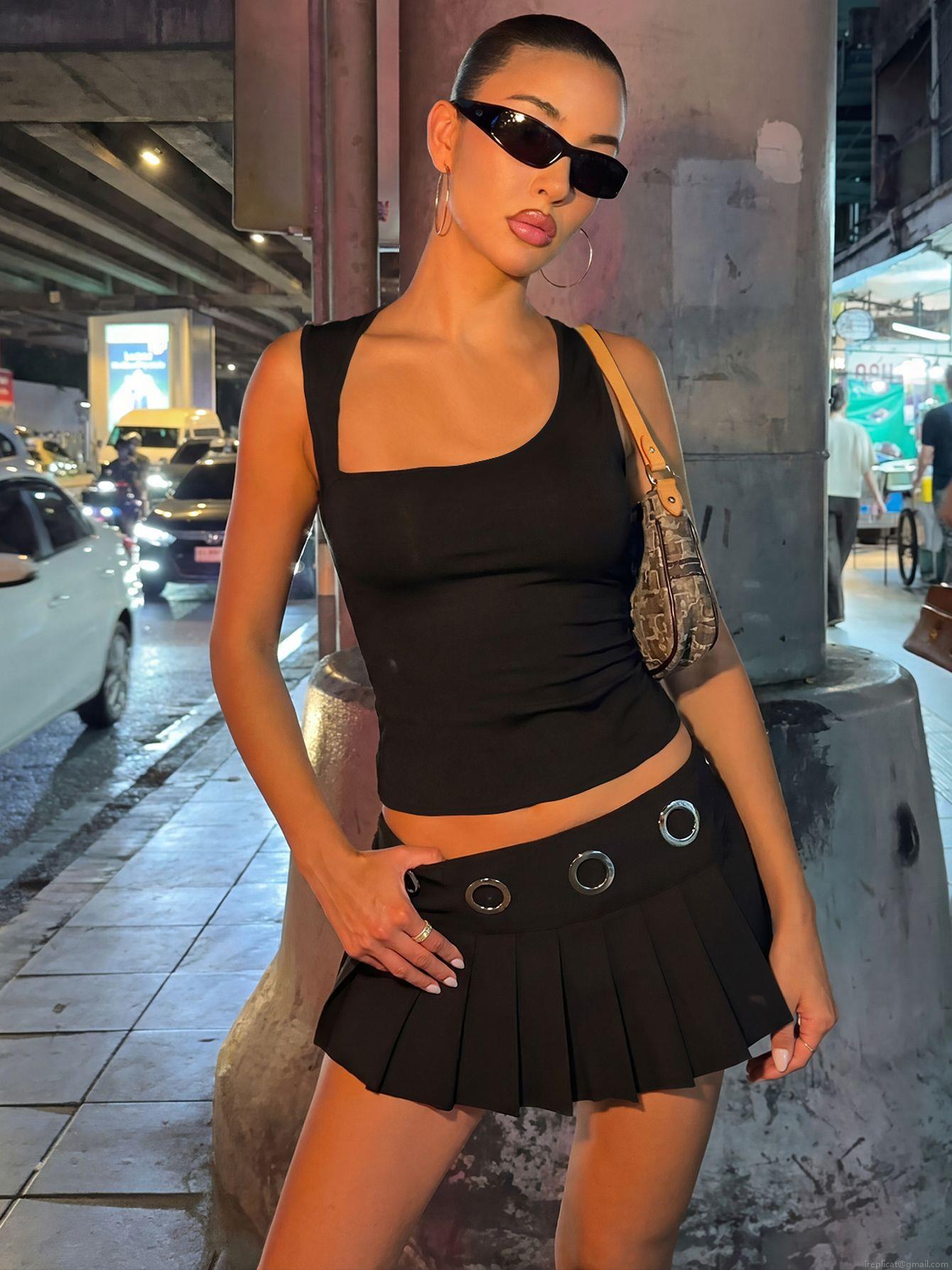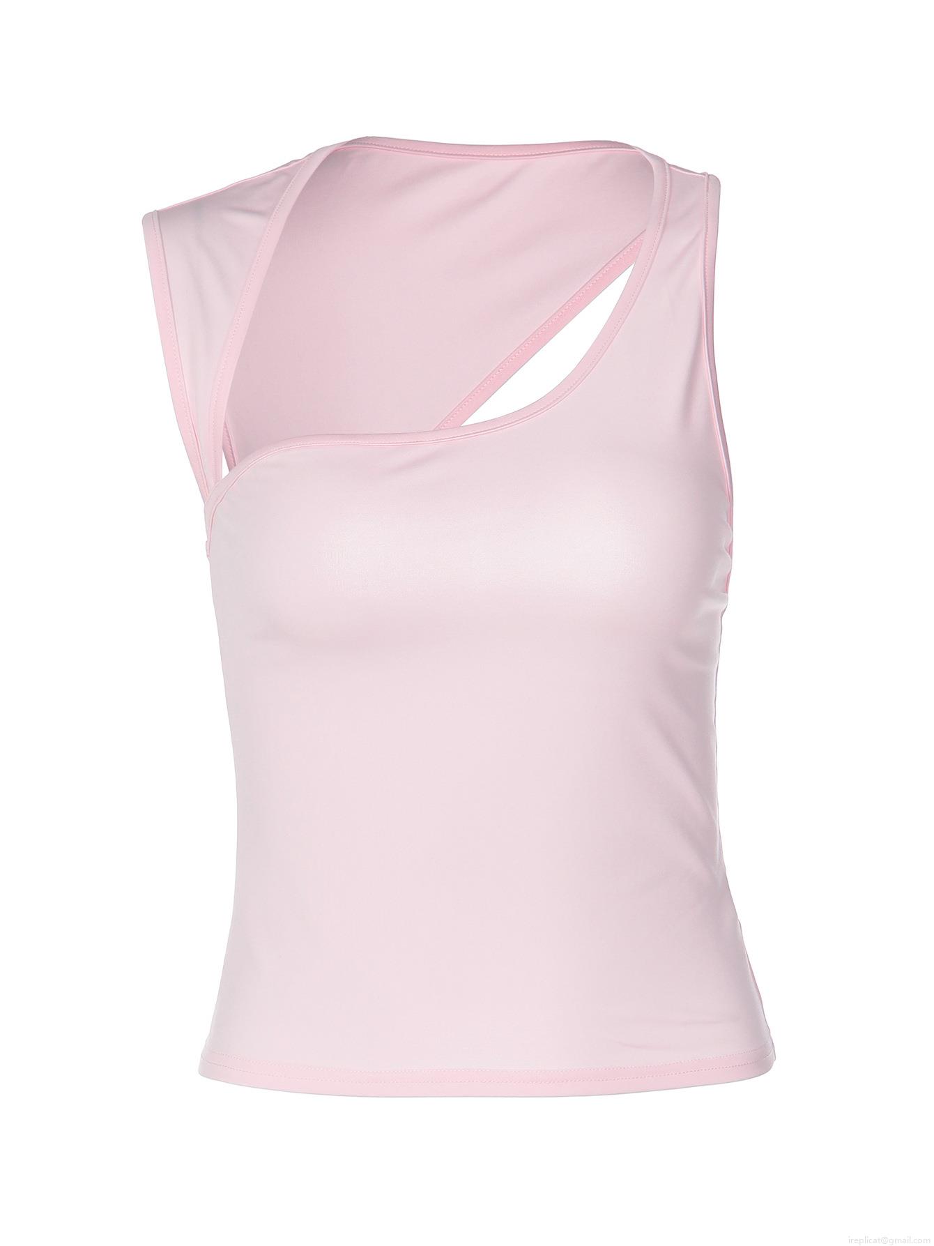 • Women Sexy Asymmetric Tank Top Irregular Neckline Hollow Out Sleeveless Slim Fit Vest Summer Streetwear Spicy Girl Style Solid Color Polyester Spandex Top