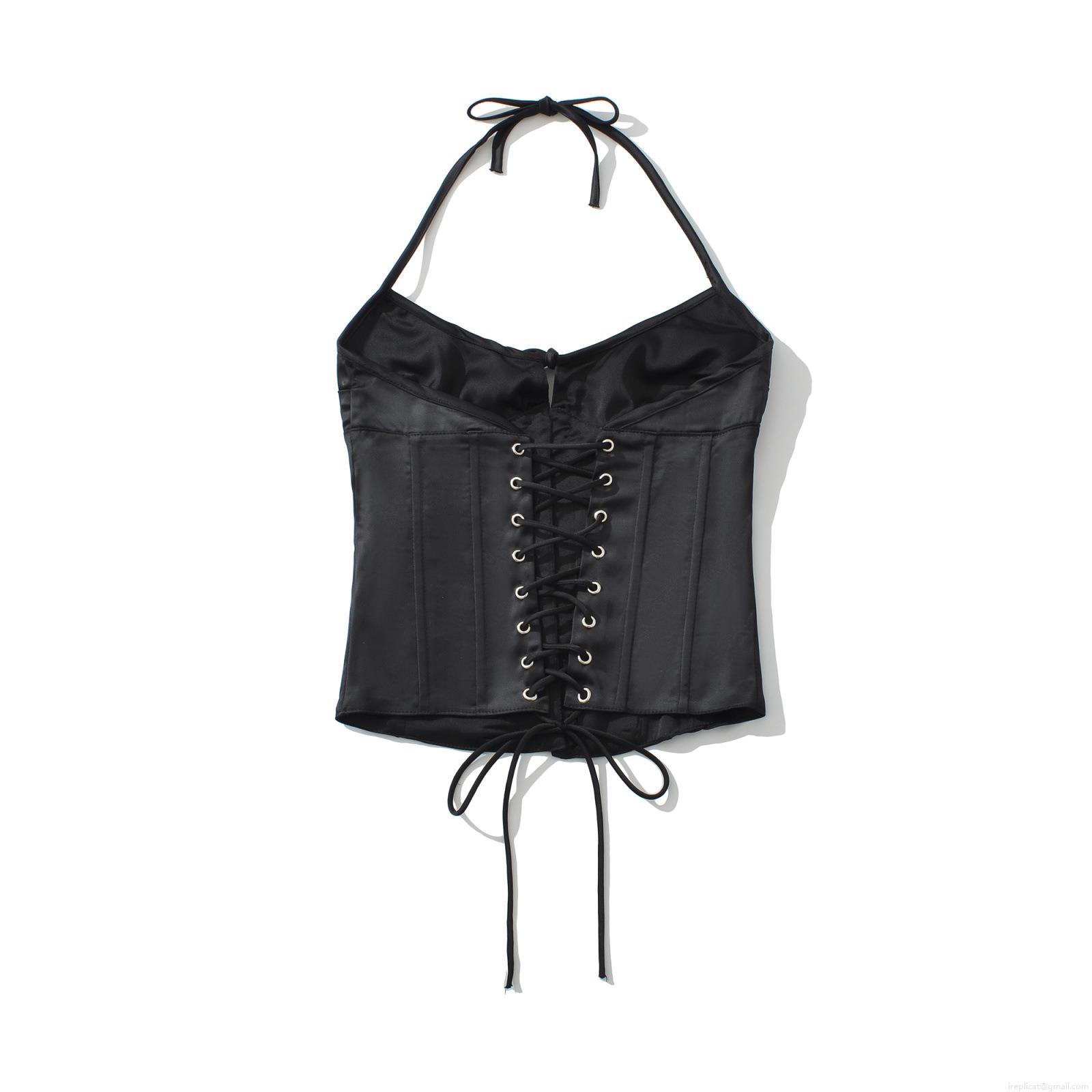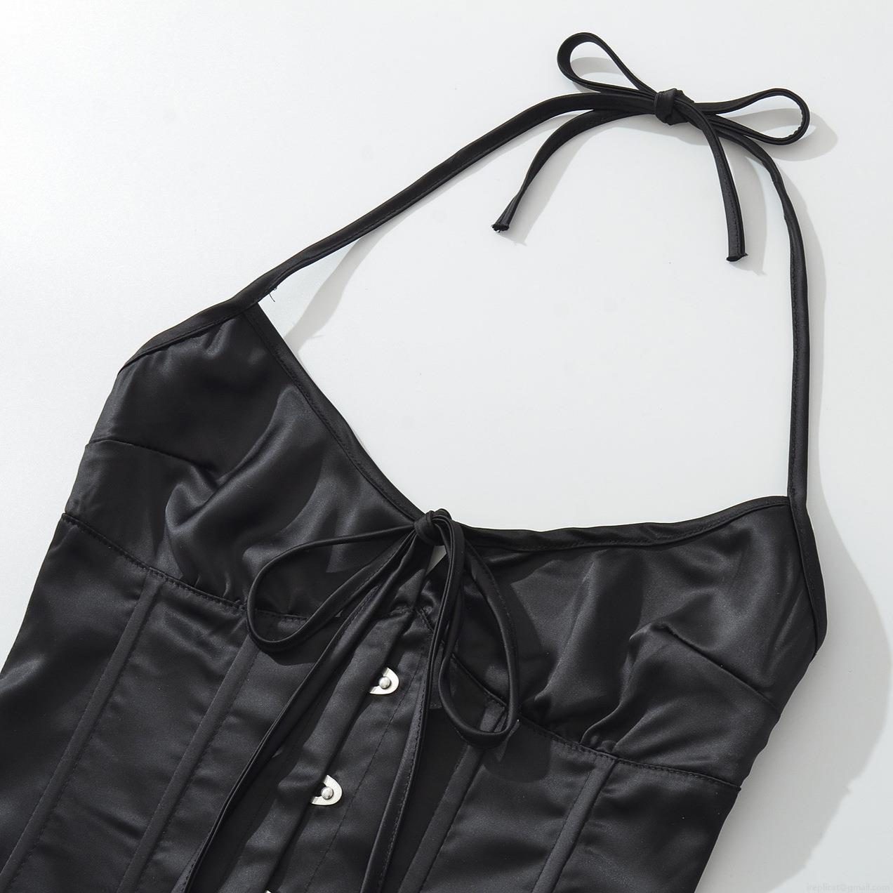 • Women Sexy Backless Halter Corset Top Satin Polyester Boned Adjustable Front Hook Closure Party Clubwear Slim Fit Socialite Style