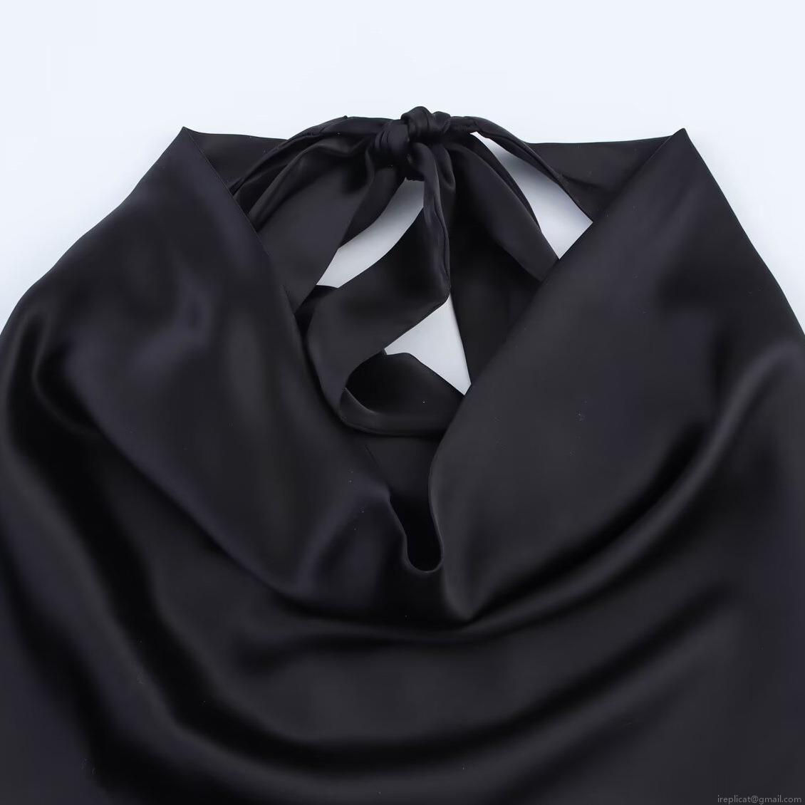 • Women Sexy Backless Halter Top Cowl Neck Satin Sleeveless Blouse With Bow Tie Back Elegant Silk Texture Summer Camisole For Party Club Ladies