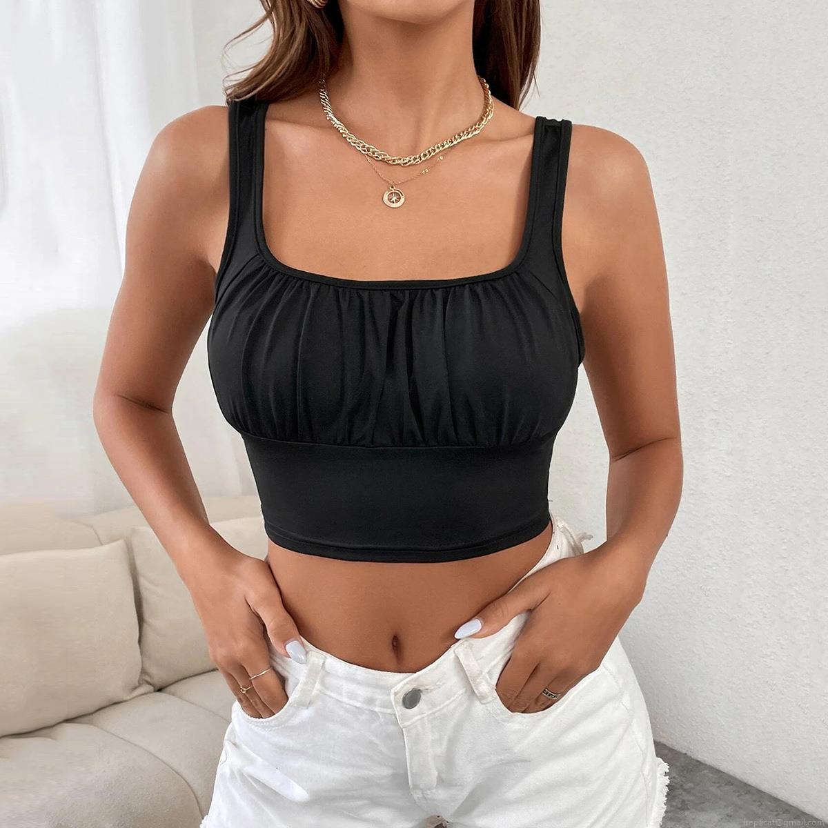 • Women Sexy Backless Ruched Tank Top Cotton Polyester Blend Square Neck Sleeveless Cropped Camisole For Summer Party Slim Fit Black Cami Top