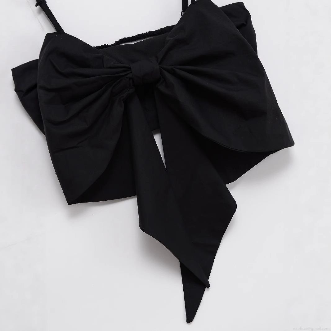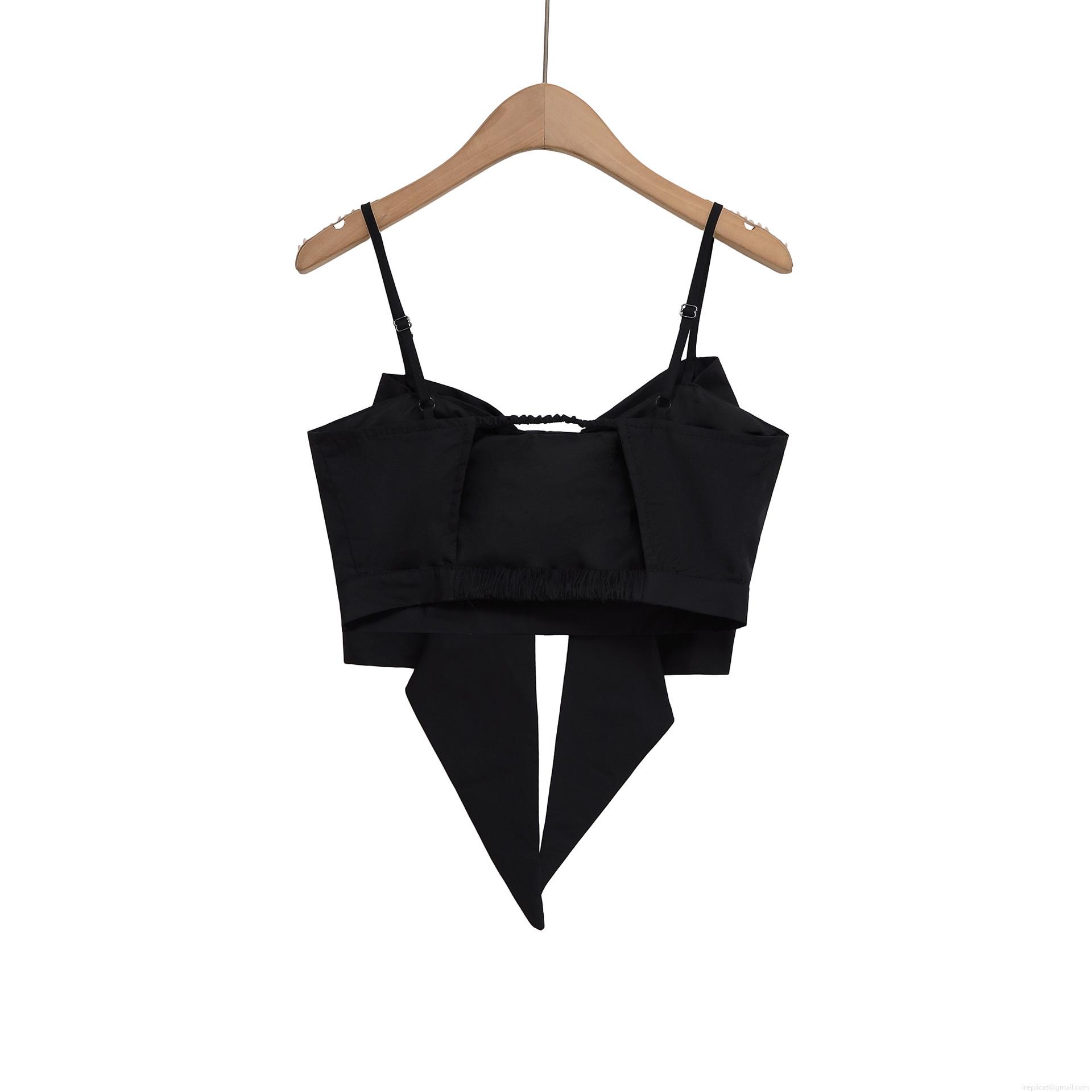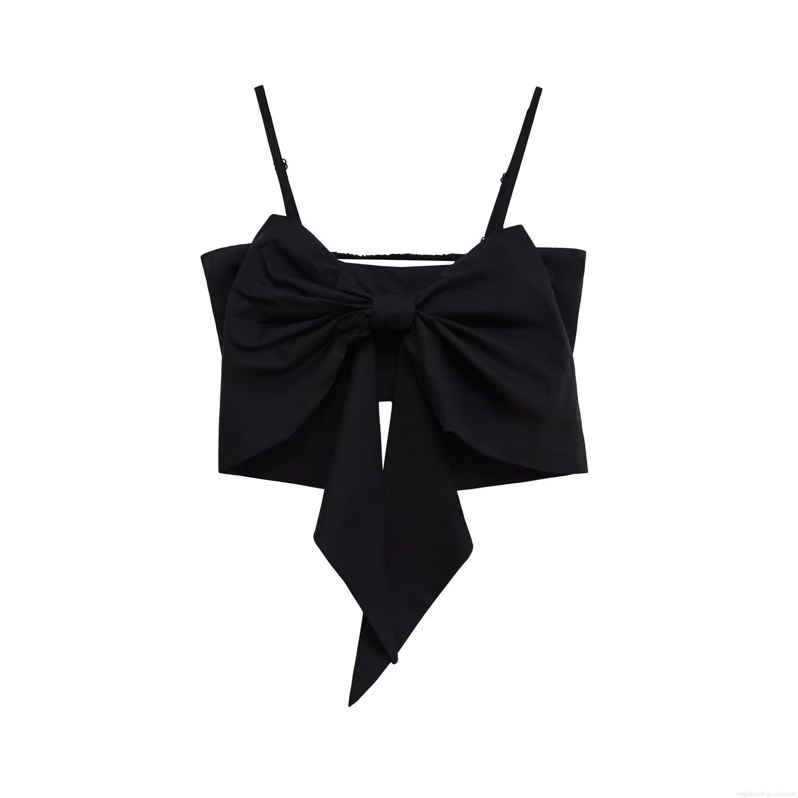 • Women Sexy Black Big Bow Decor Crop Top Camisole Cotton Blend Backless Adjustable Spaghetti Strap Tank Top For Party Summer Street Style Fashion