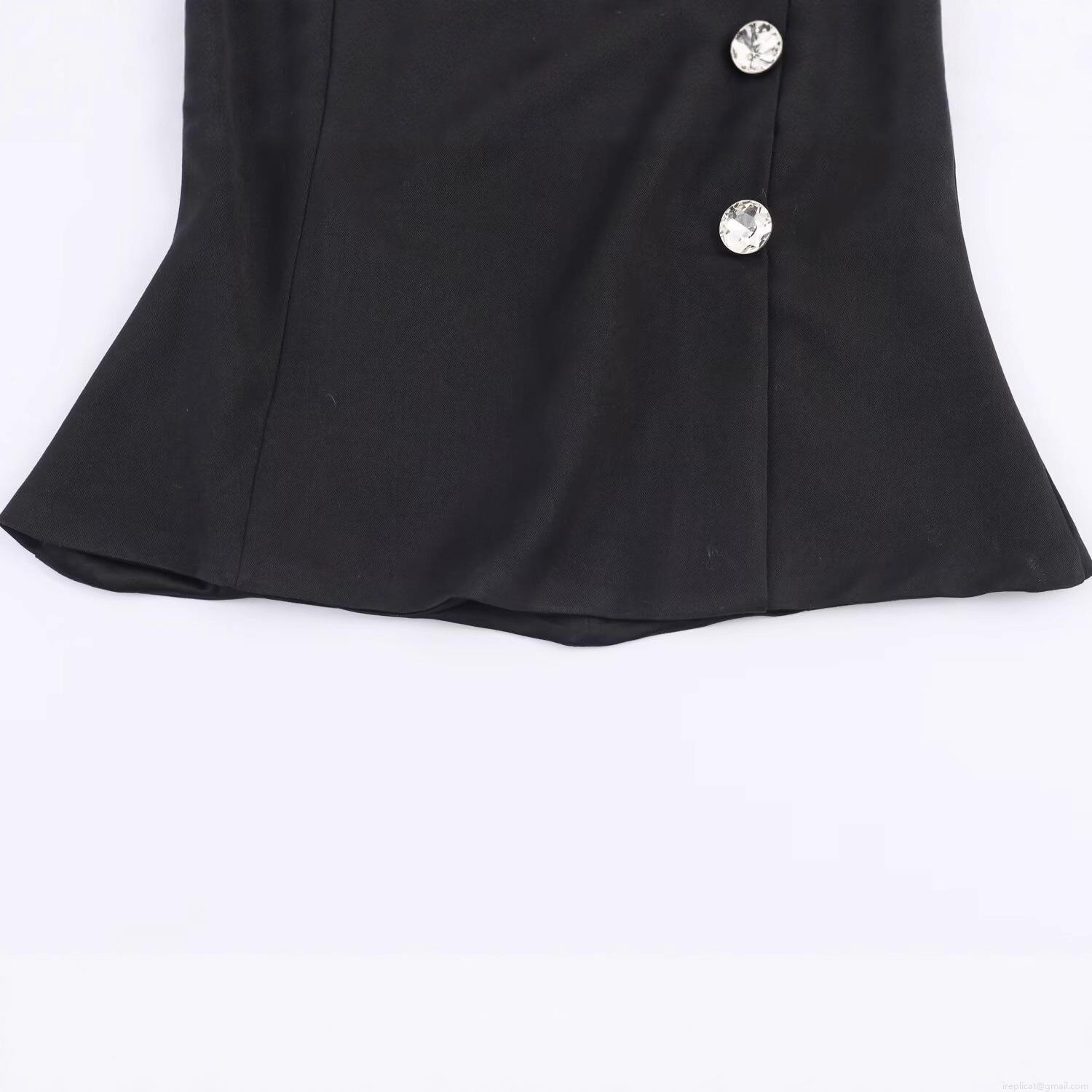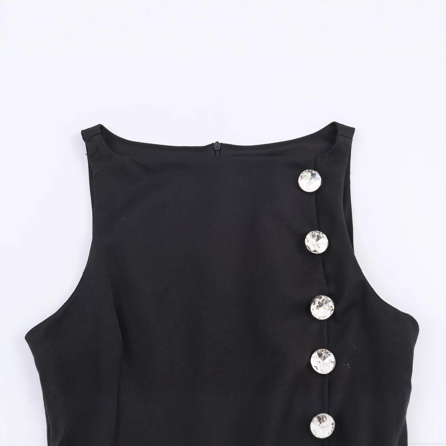 • Women Sexy Black Sleeveless Top With Large Elegant Rhinestone Buttons Slim Fit Tank Top For Party Club Evening Wear Celebrity Style Fashion Blouse