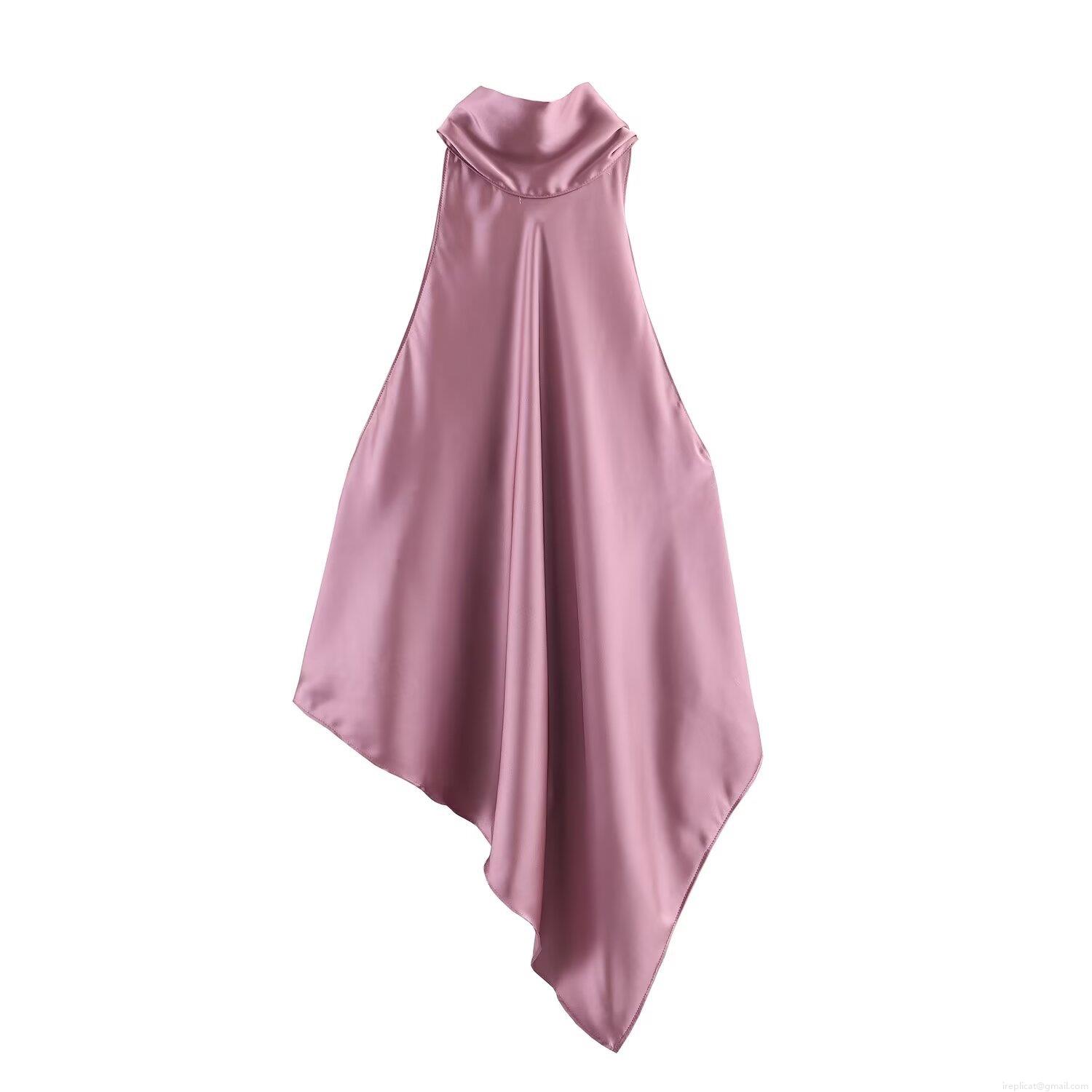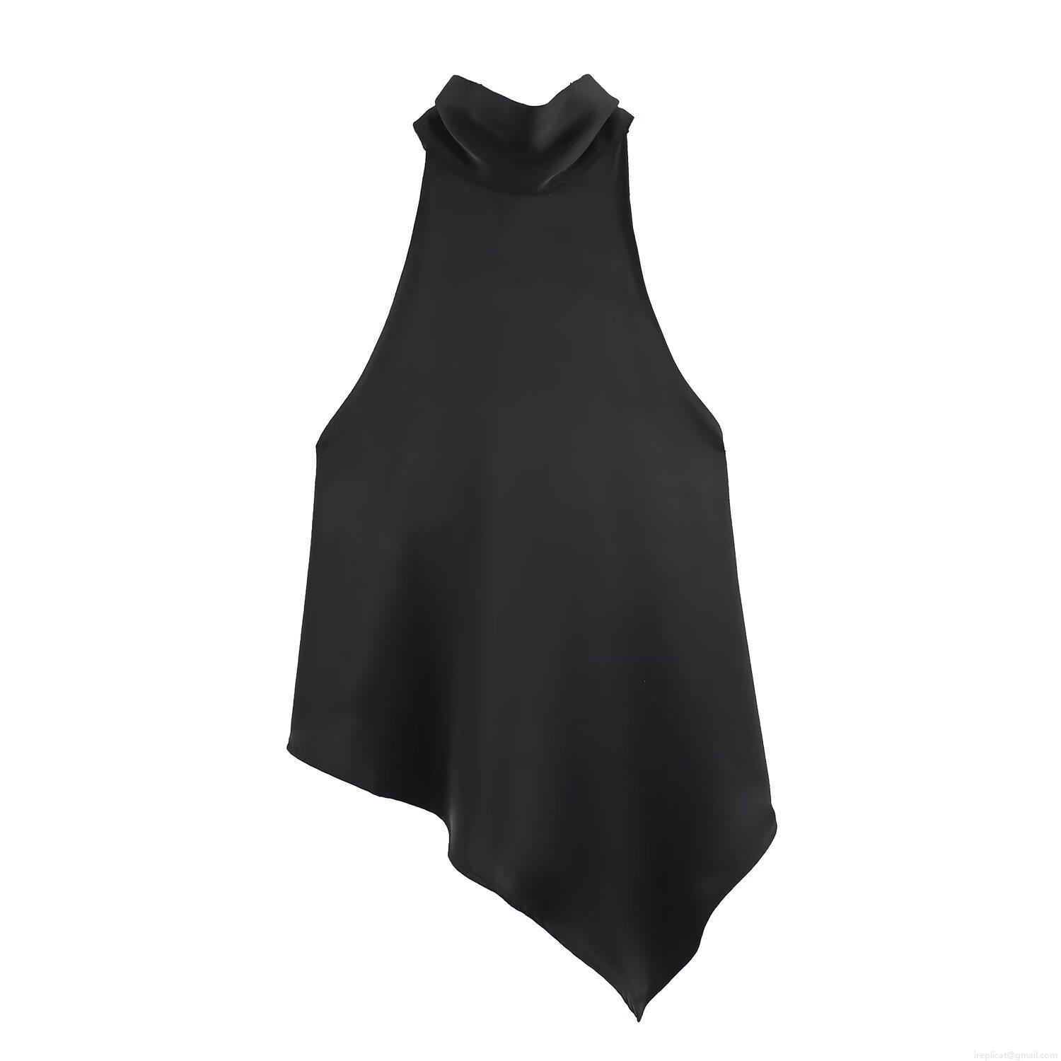 • Women Sexy Cowl Neck Satin Tank Top Halter Backless Asymmetric Hem Slim Fit Sleeveless Solid Color Socialite Party Top for Summer